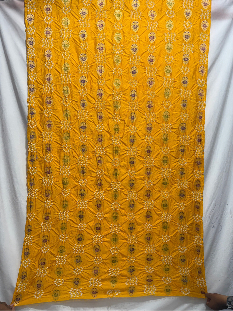 Color & Work: All Over Golden Kurti material featuring handcrafted Bandhani patterns, giving a rich ethnic appeal.
