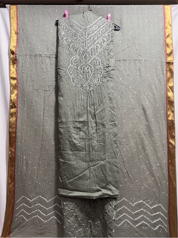 Kala Sanskruti All Over Gray Color Heavy Cotton Satin Bandhani Dress 2.5 M (Each Piece) Elegant Traditional Wear Dress Material for Women