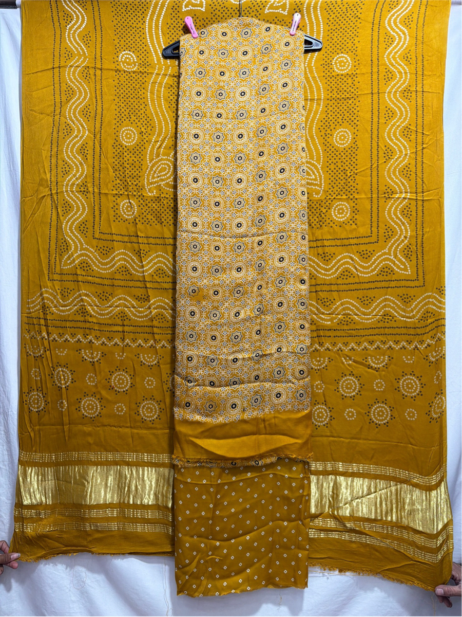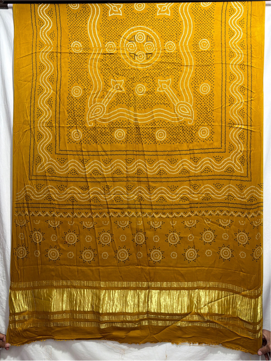 Kala Sanskruti All Over Golden Color Art Silk Patola Dress 2.5 M Each Piece Elegant Traditional Wear Art Silk Dress for Women