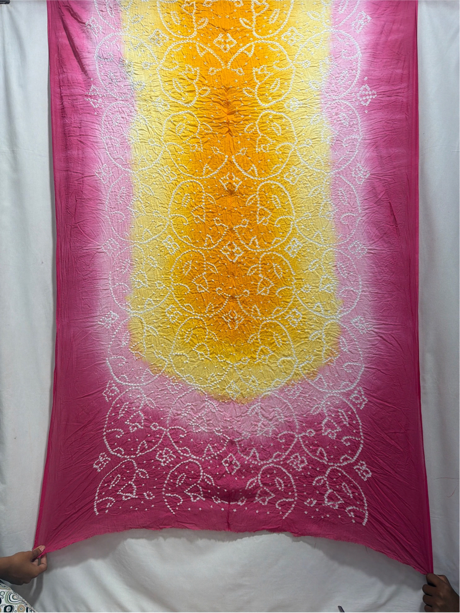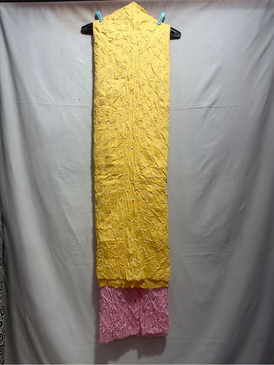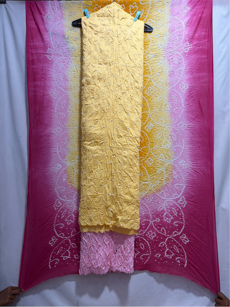 Kala Sanskruti Light Yellow & Light Pink Color Heavy Cotton Satin Bandhani Dress 2.5 M (Each Piece) Elegant Traditional Wear Dress Material for Women