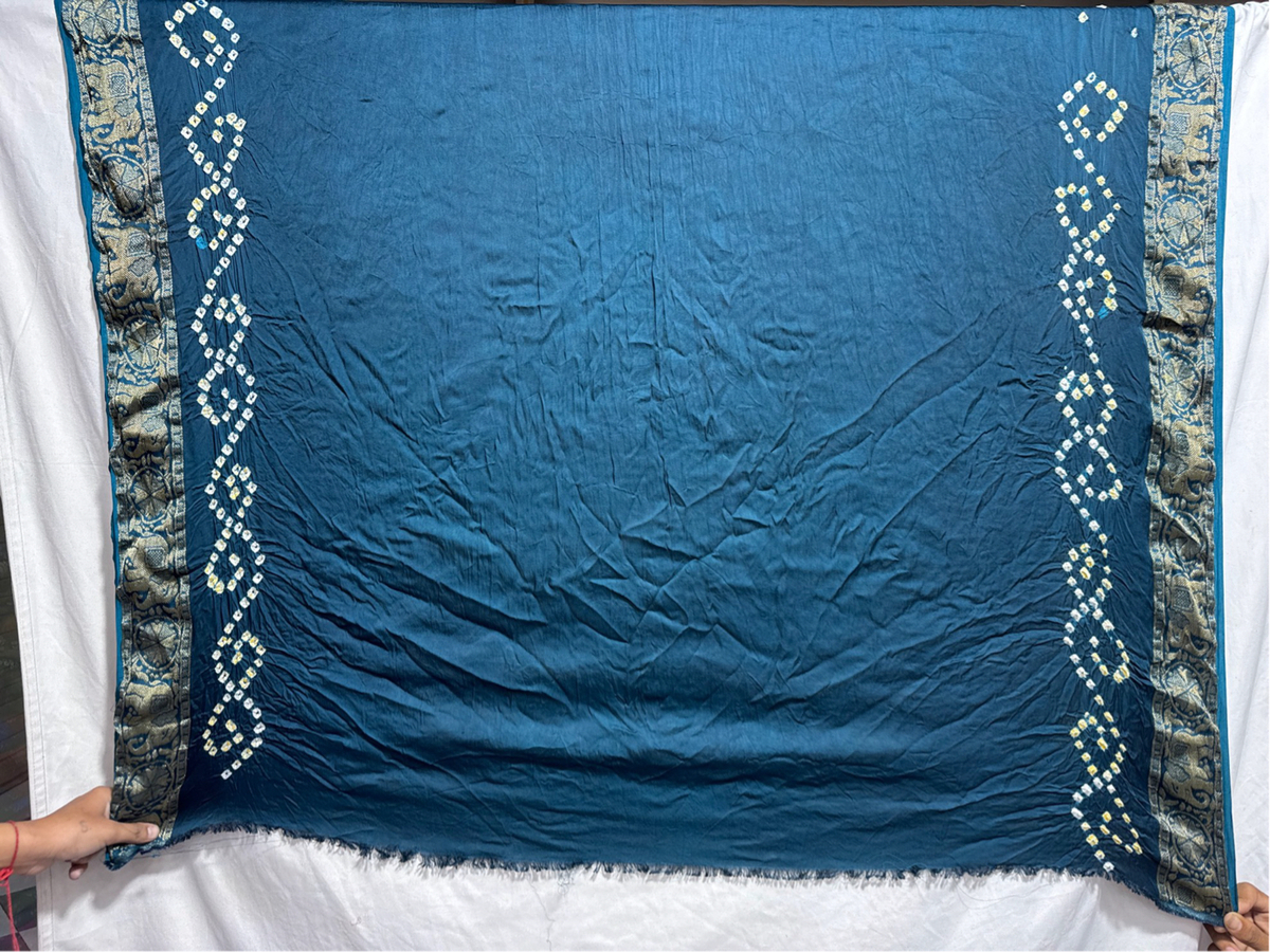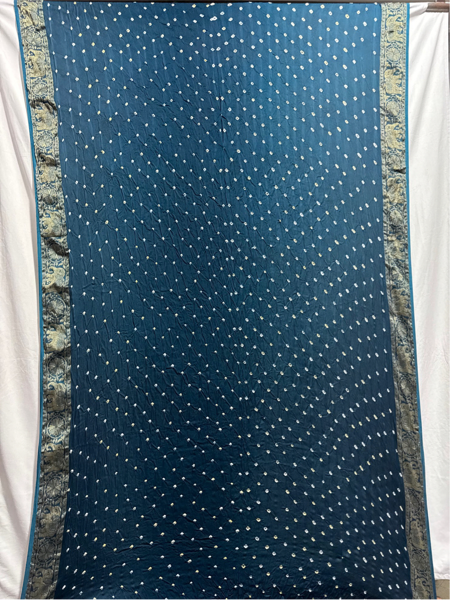 All Over Indigo Color Semi Gajji Bandhani Saree