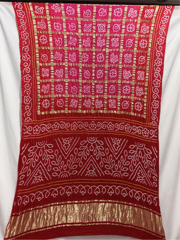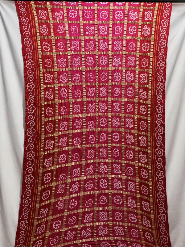Kala Sanskruti Pink & Red Color Pure Gaji Silk Heavy Gharchola Bandhani Saree 6.5M with Blouse Piece Elegant Traditional Wear Gharchola Saree for Women