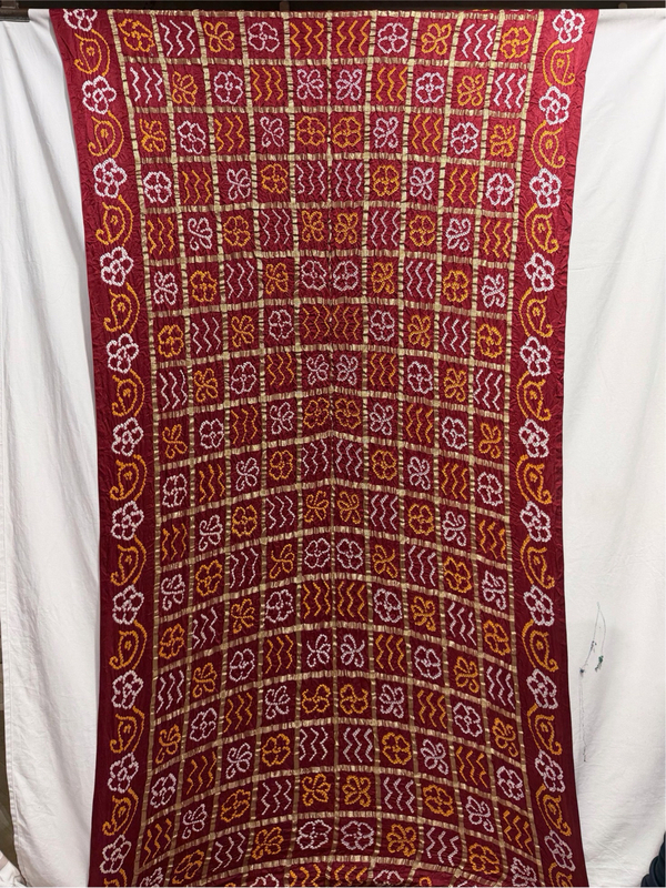 Kala Sanskruti All Over Maroon Color Pure Gaji Silk Heavy Gharchola Bandhani Saree 6.5M with Blouse Piece Elegant Traditional Wear Gharchola Saree for Women