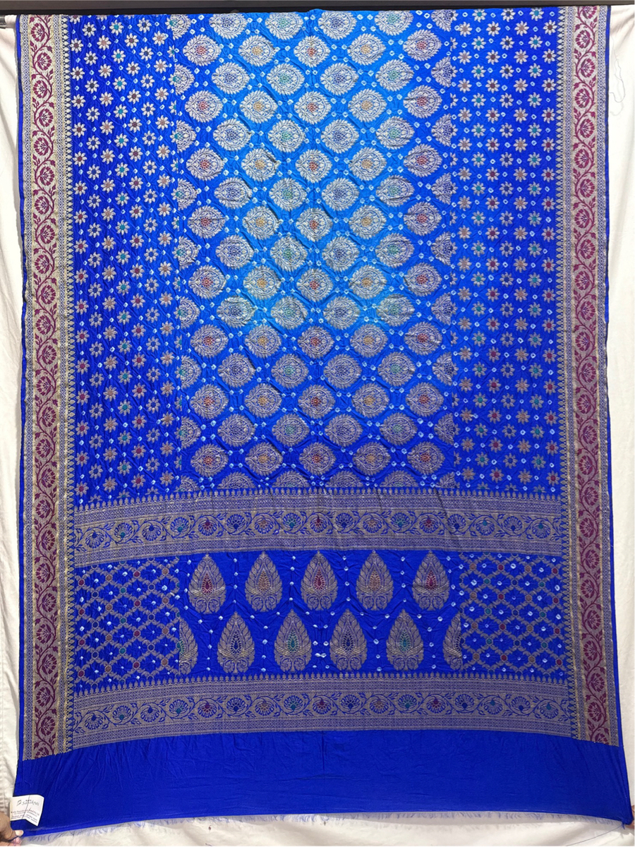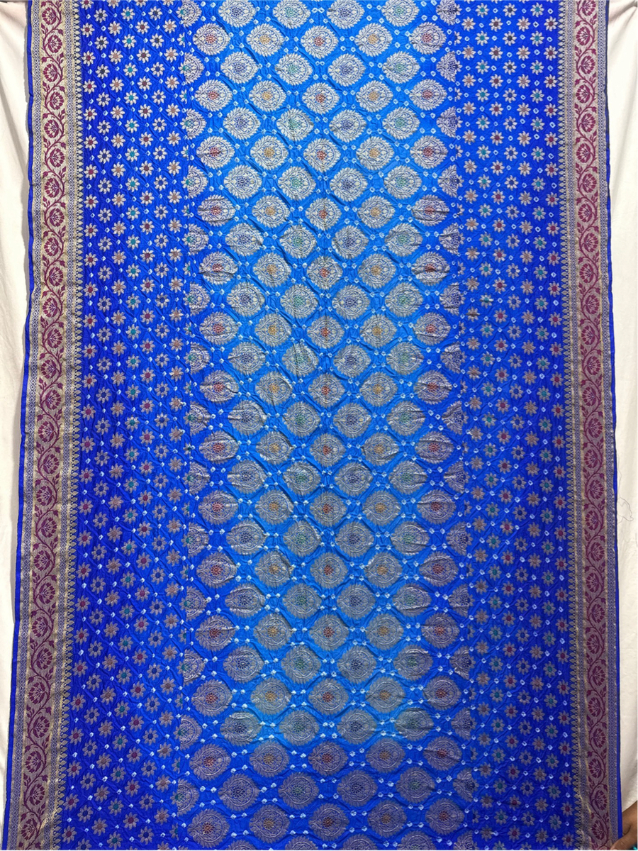 Kala Sanskruti Light Dark Blue Color Dupion Silk Bandhani Saree 6.5M with Blouse Piece Elegant Traditional Wear Bridal Saree for Women