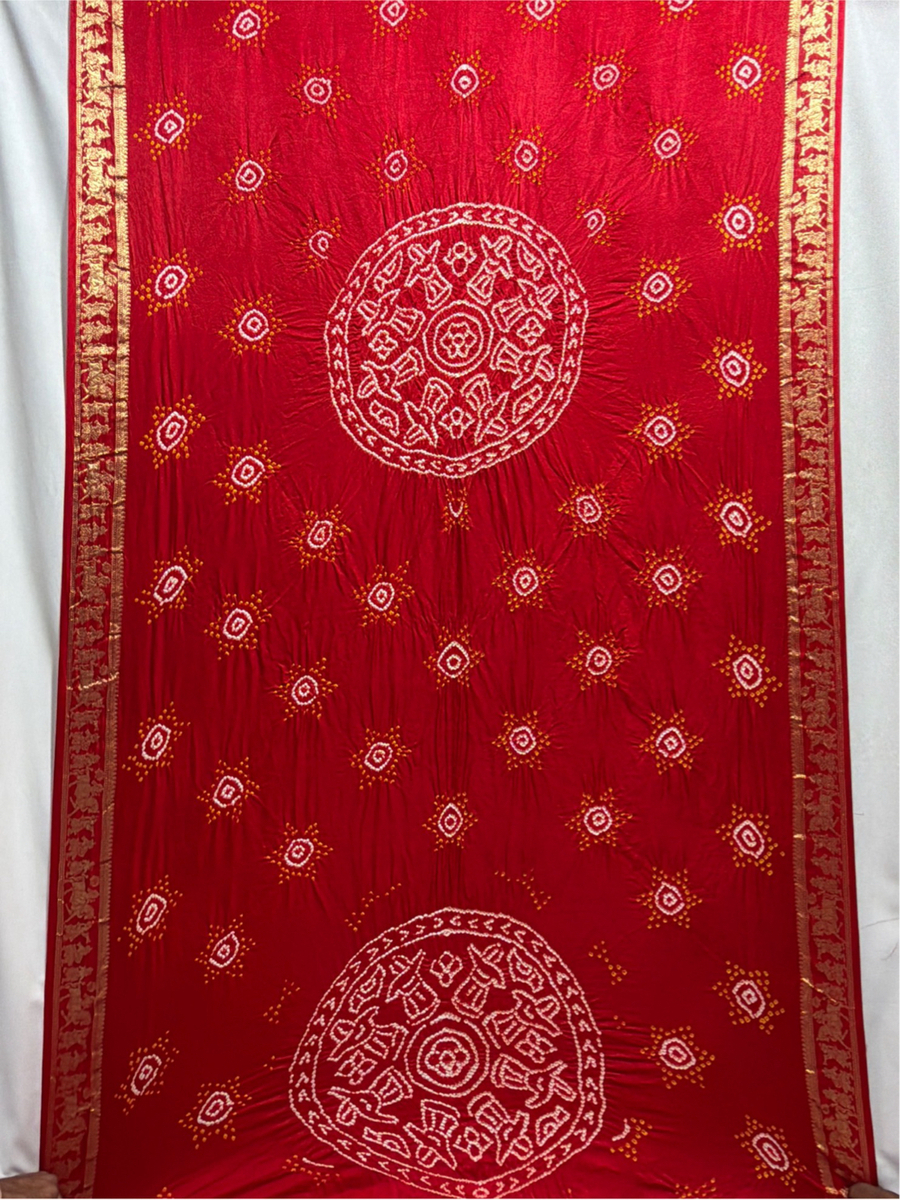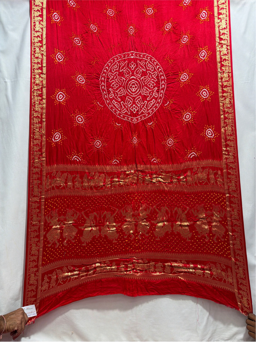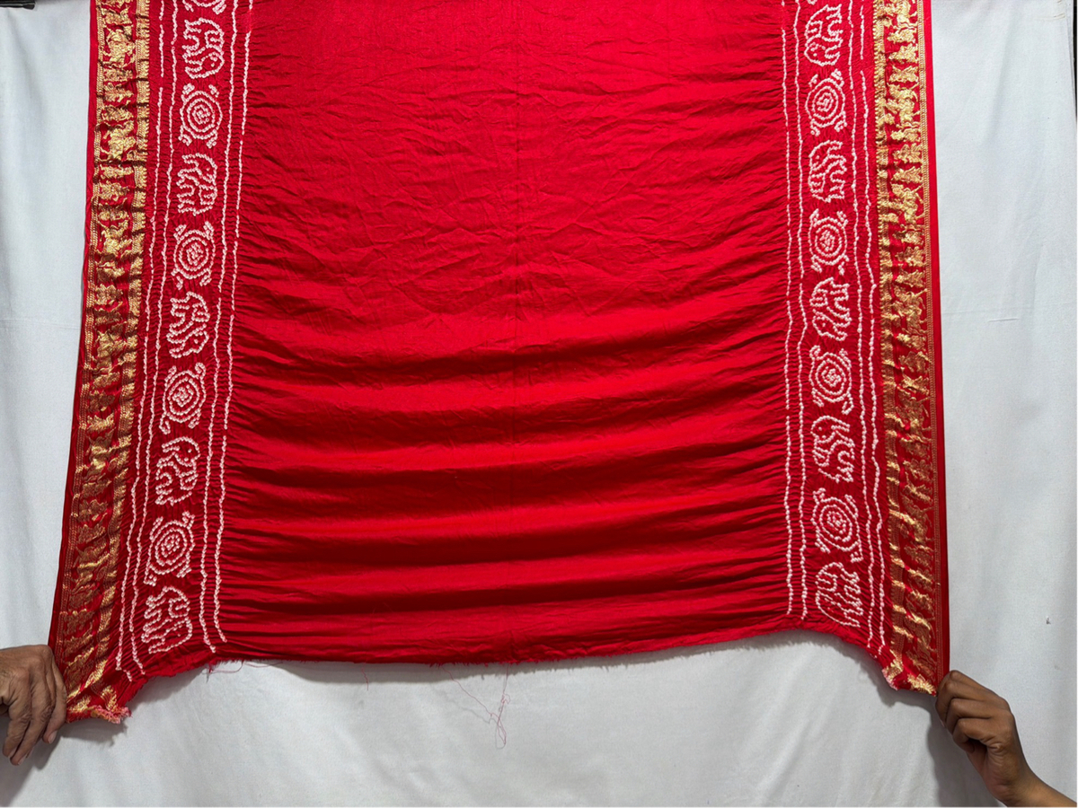 Kala Sanskruti All Over Cherry Red Color Pure Gaji Silk Bandhani Saree 6.5M with Blouse Piece Elegant Traditional Wear Saree for Women