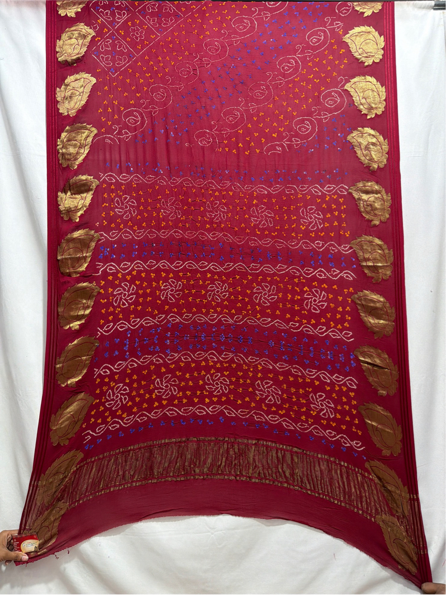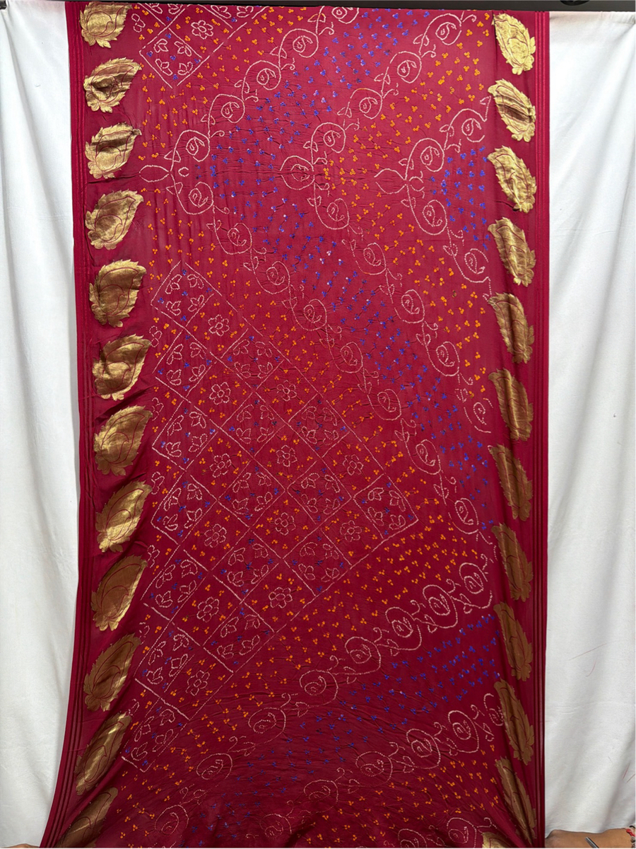 Kala Sanskruti All Over Maroon Color Pure Creap Bandhani Saree 5.5M Without Blouse Elegant Traditional Wear Graceful Handcrafted Artistry For Woman