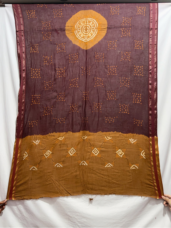 Kala Sanskruti Rust & Chocolate Color Heavy Cotton Satin Bandhani Dress 2.5 M (Each Piece) Elegant Traditional Wear Dress Material for Women