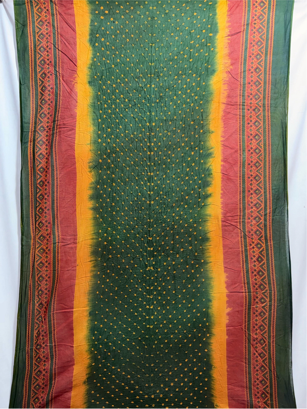 Kala Sanskruti Green & Golden & Red 3D Color Cotton Bandhani Saree 6.5M with Blouse Piece Elegant Traditional Wear Saree for Women