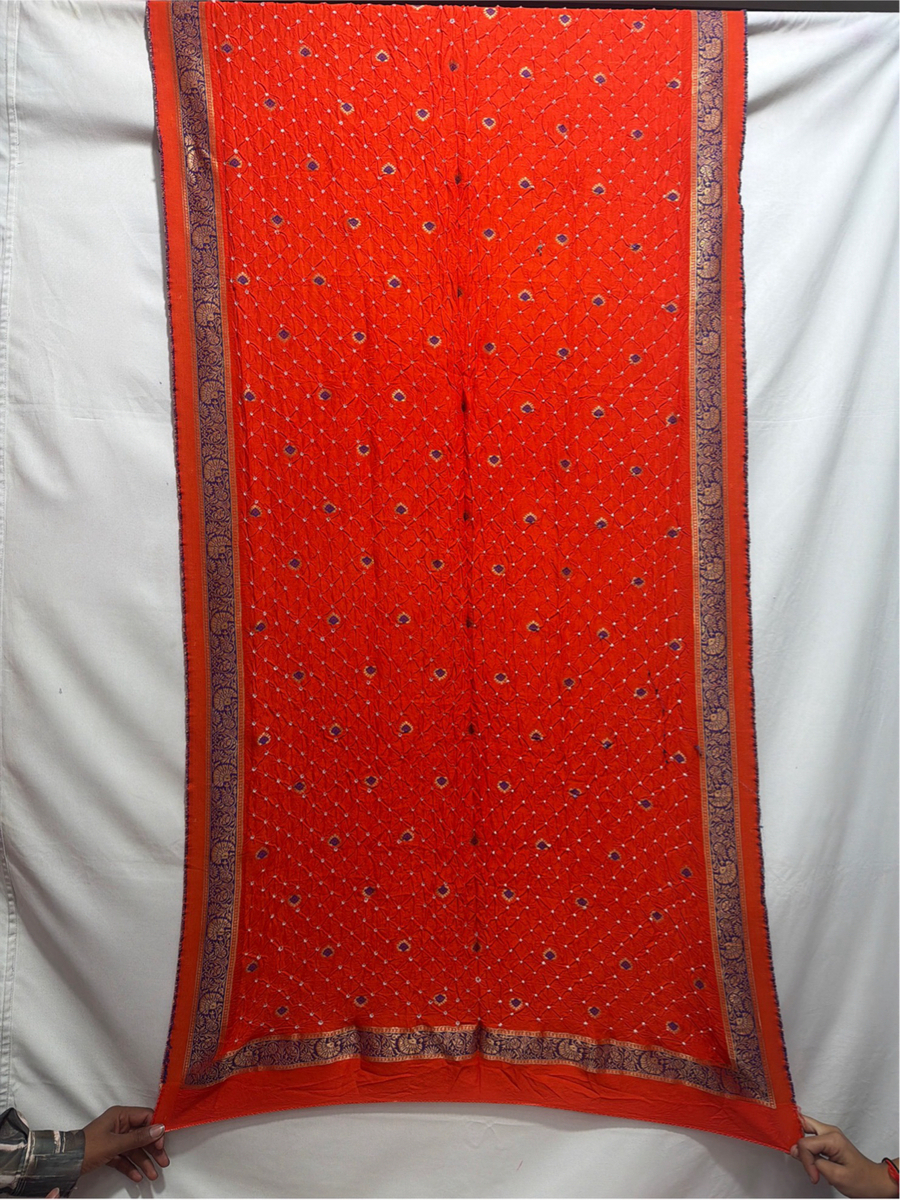 Kala Sanskruti All Over Orenge Color Art Silk Bandhani Dress 2.5 M Each Piece Elegant Traditional Wear Art Silk Dress for Women