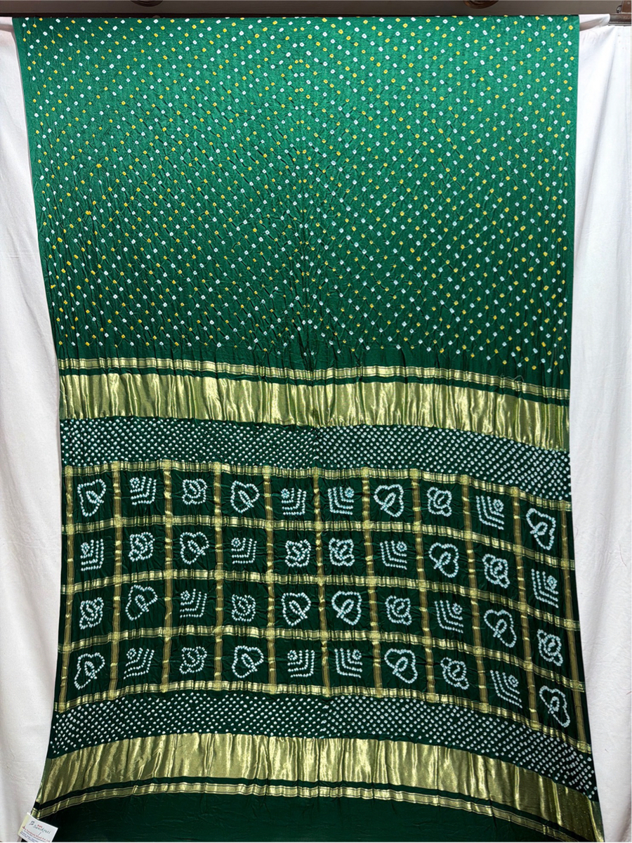 Kala Sanskruti All Over Green Color Pure Gaji Silk Bandhani Saree 6.5M with Blouse Piece Elegant Traditional Wear Saree for Women