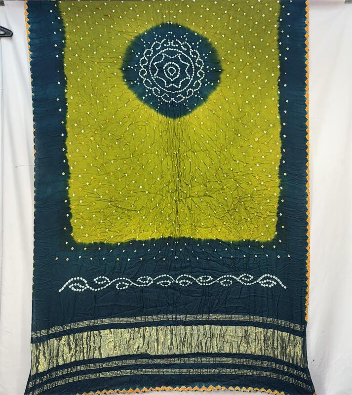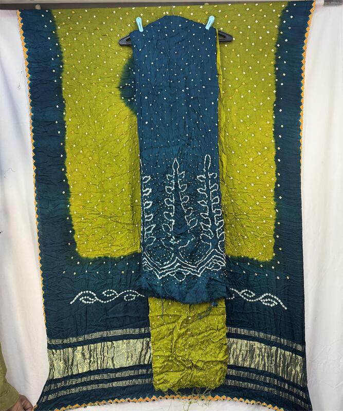Kala Sanskruti indigo & Mehndi Color Art Silk Bandhani Dress – 2.5M (Each Piece)– Elegant Traditional Wear Bridal Dress for Women