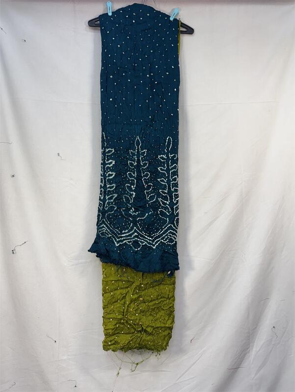 - Design: indigo & Mehndi — Hand Made Bandhani motifs across the body.
