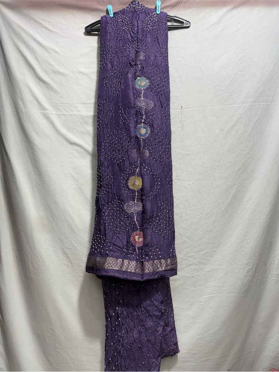 Kala Sanskruti Light Dark Purple Color Art Silk Bandhani Dress 2.5 M Each Piece Elegant Traditional Wear Art Silk Dress for Women