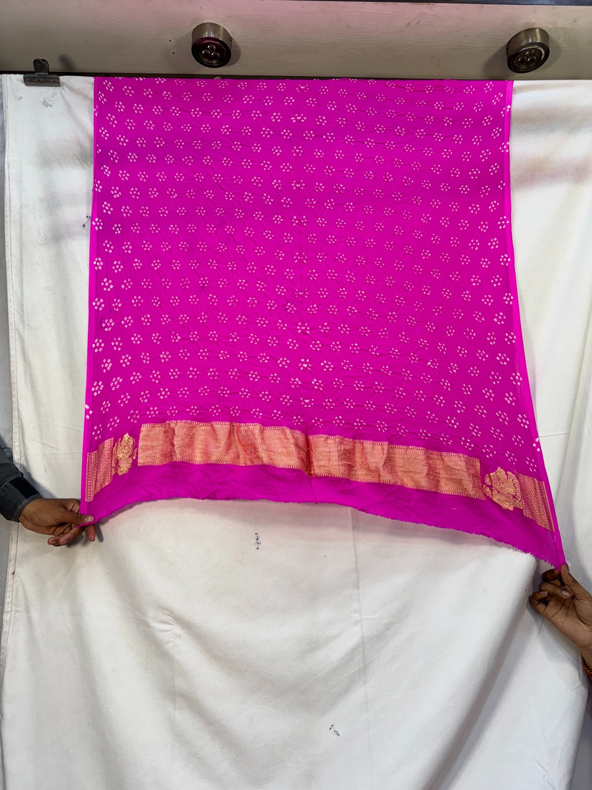 Cream & Pink Color Banarasi Georgette Bandhani Saree
