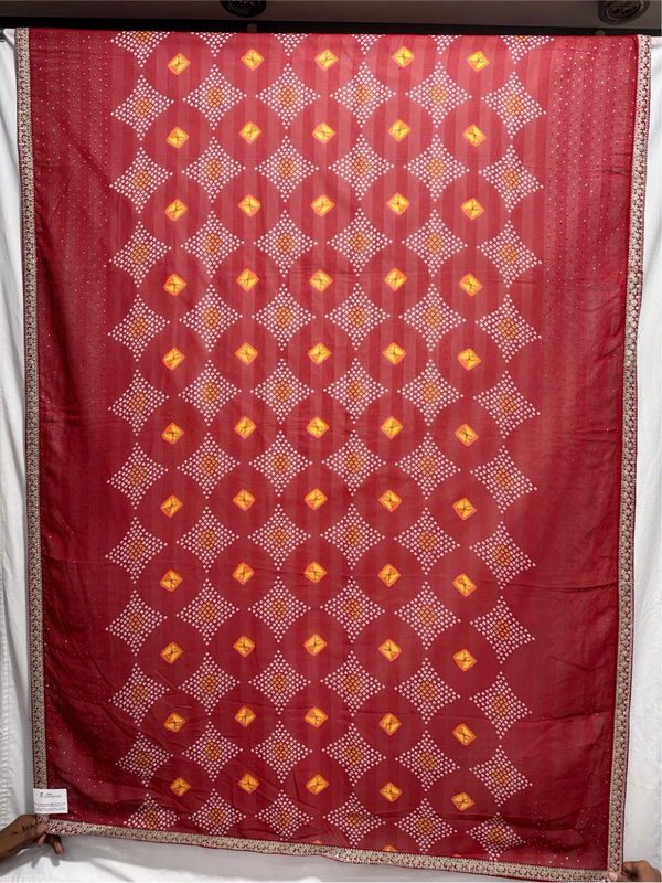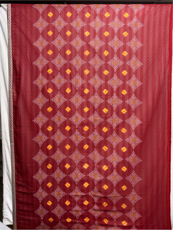 - Design: Maroon & Yellow Hand Made Bandhani motifs across the body.