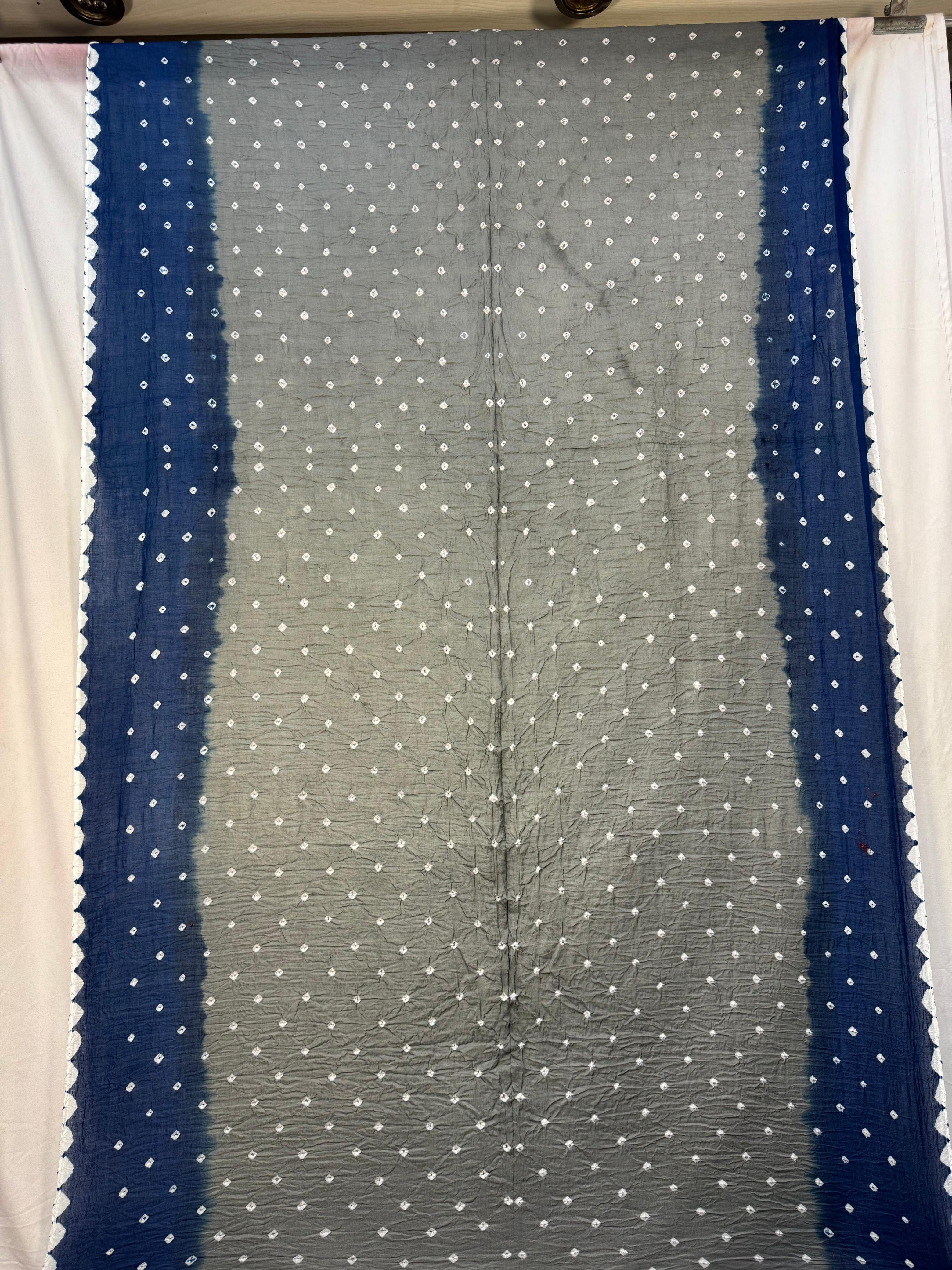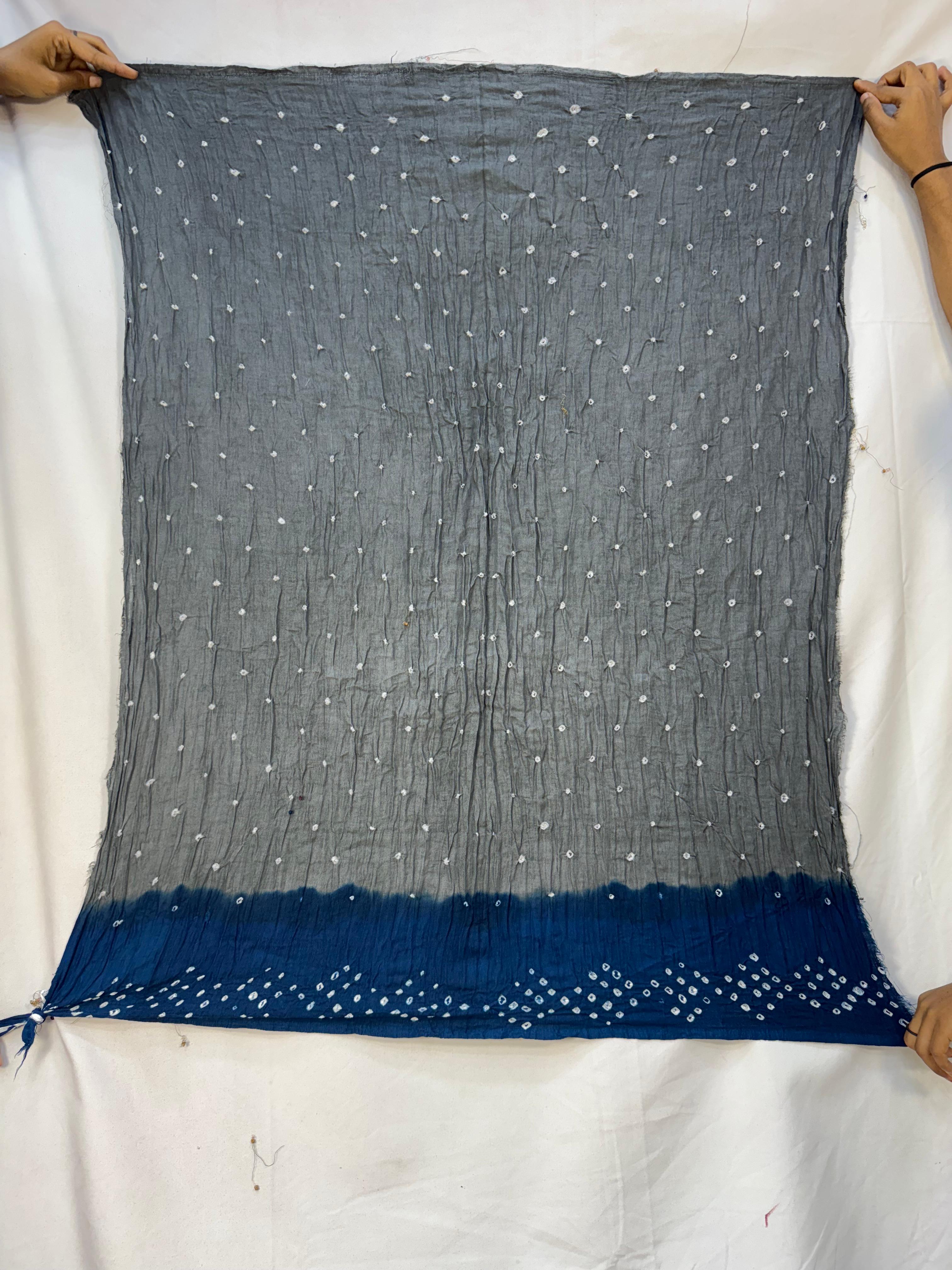 - Color & Work: Gray & Indigo design embellished with Hand Made Bandhani, highlighting artisanal craftsmanship.