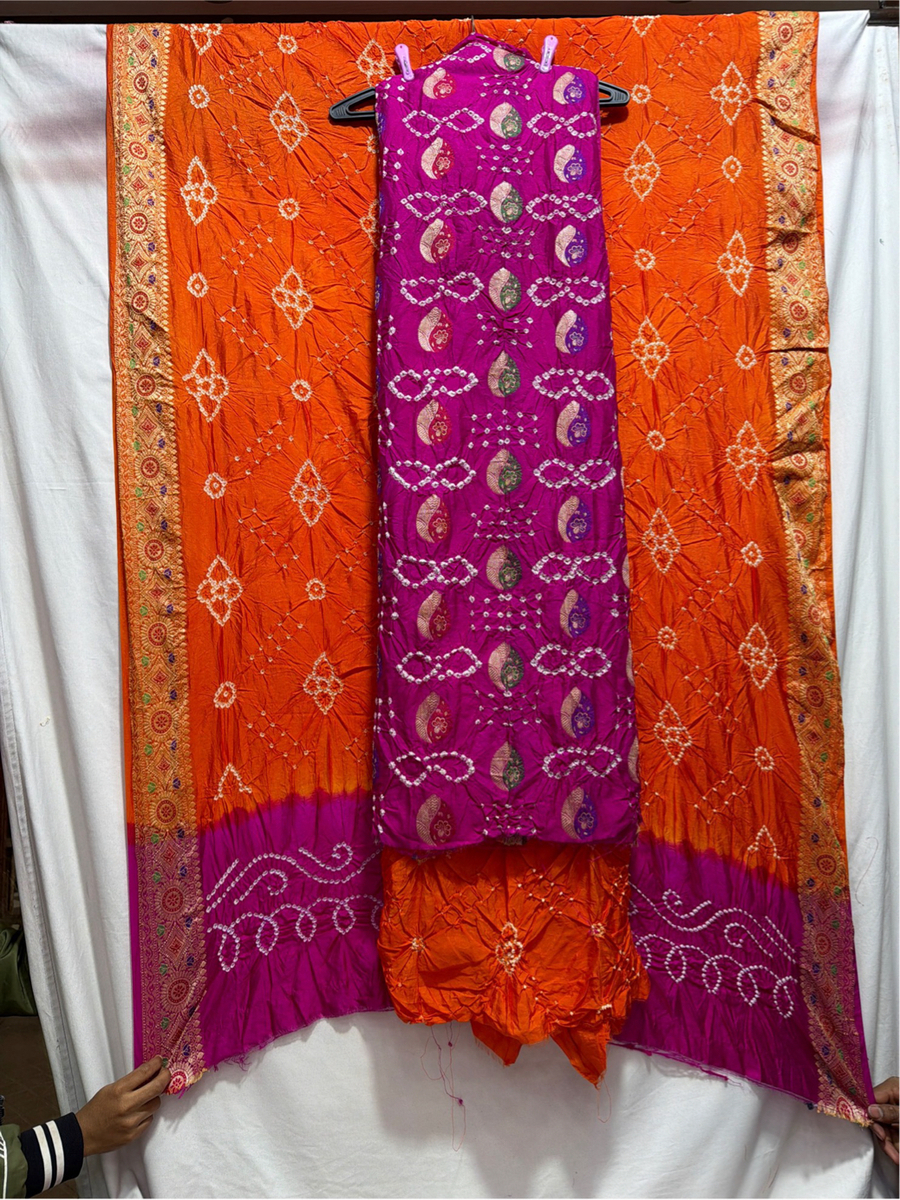 Kala Sanskruti Pink & Orange Color Dupion Silk Bandhani Dress 2.5 M (Each Piece) Elegant Traditional Wear Dress for Women