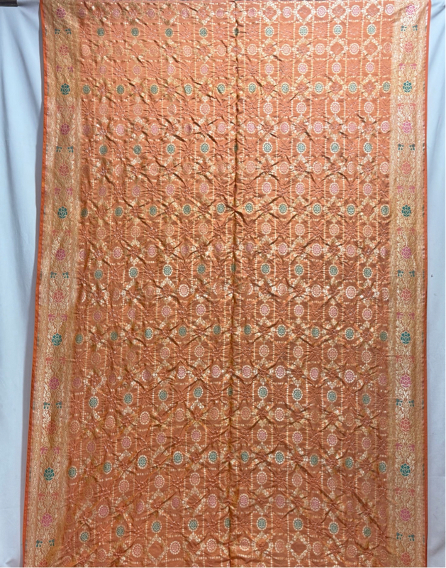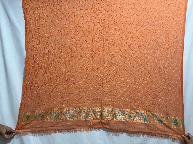 Kala Sanskruti All Over Peach Color Dupion Silk Bandhani Saree 6.5M with Blouse Piece Elegant Traditional Wear Bridal Saree for Women