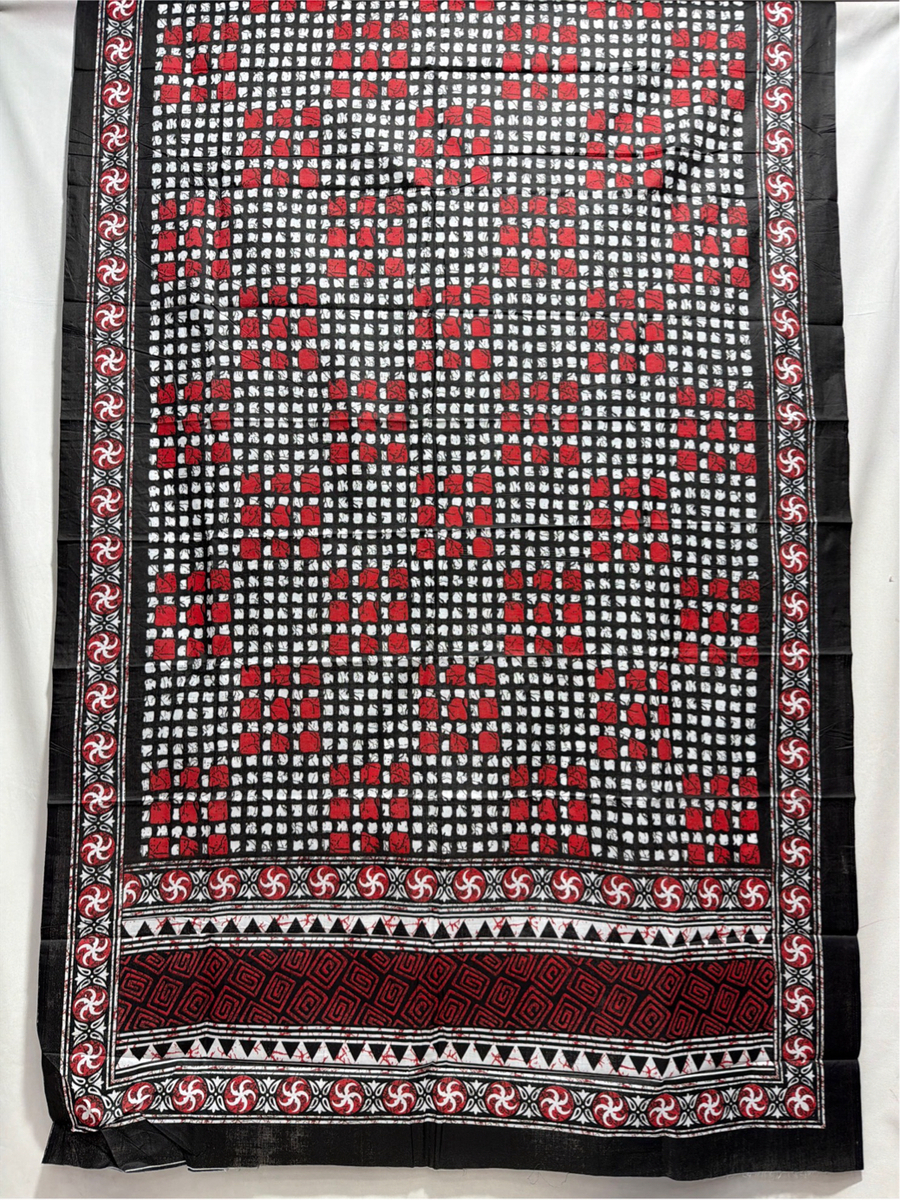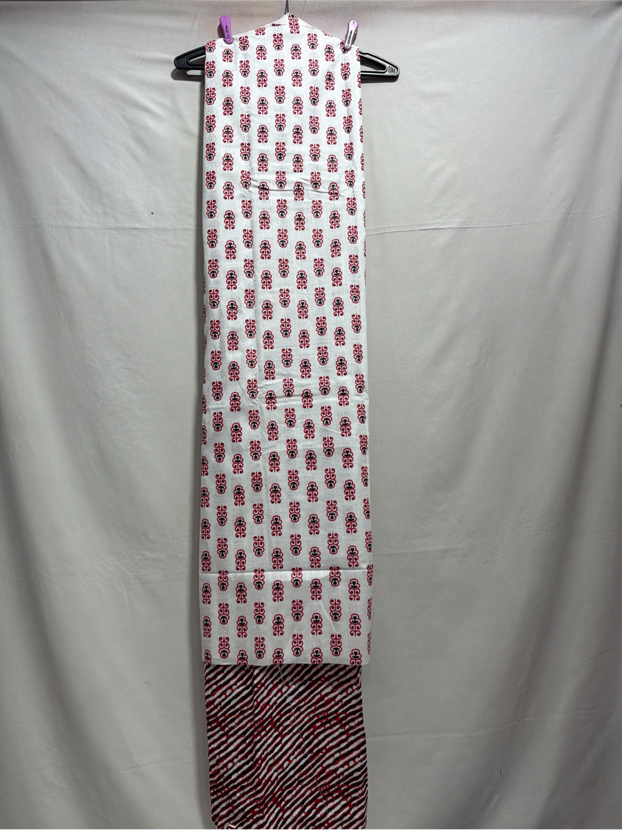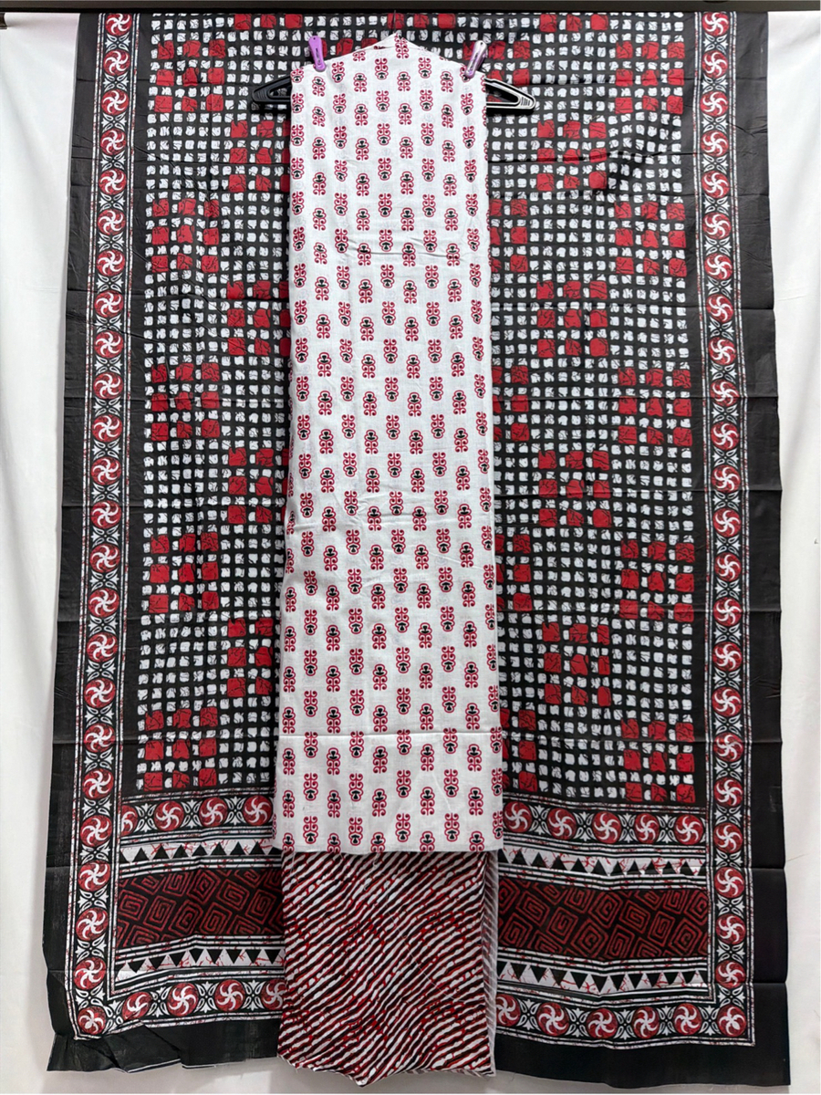 Kala Sanskruti White, Red & Black Color Heavy Cotton Satin Printed Dress 2.5 M (Each Piece) Elegant Traditional Wear Dress Material for Women