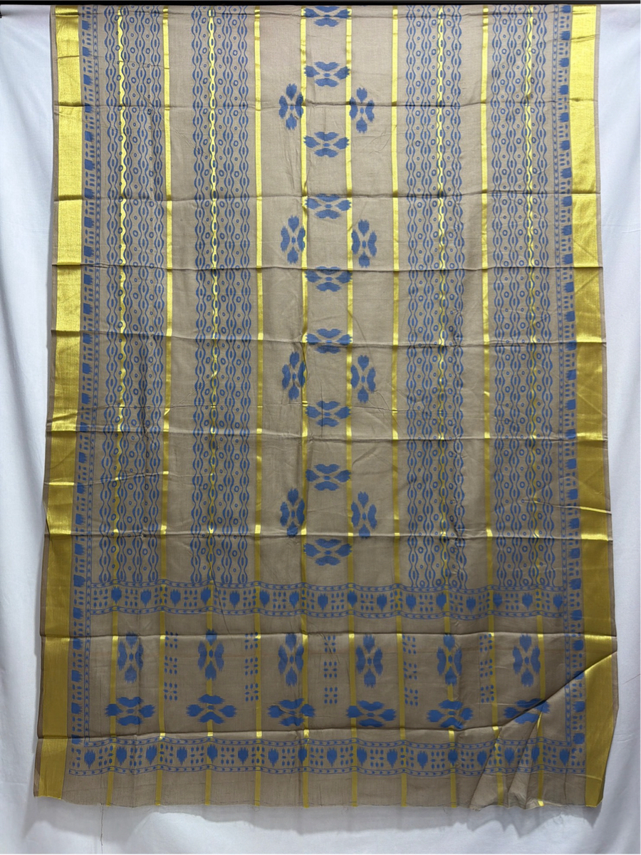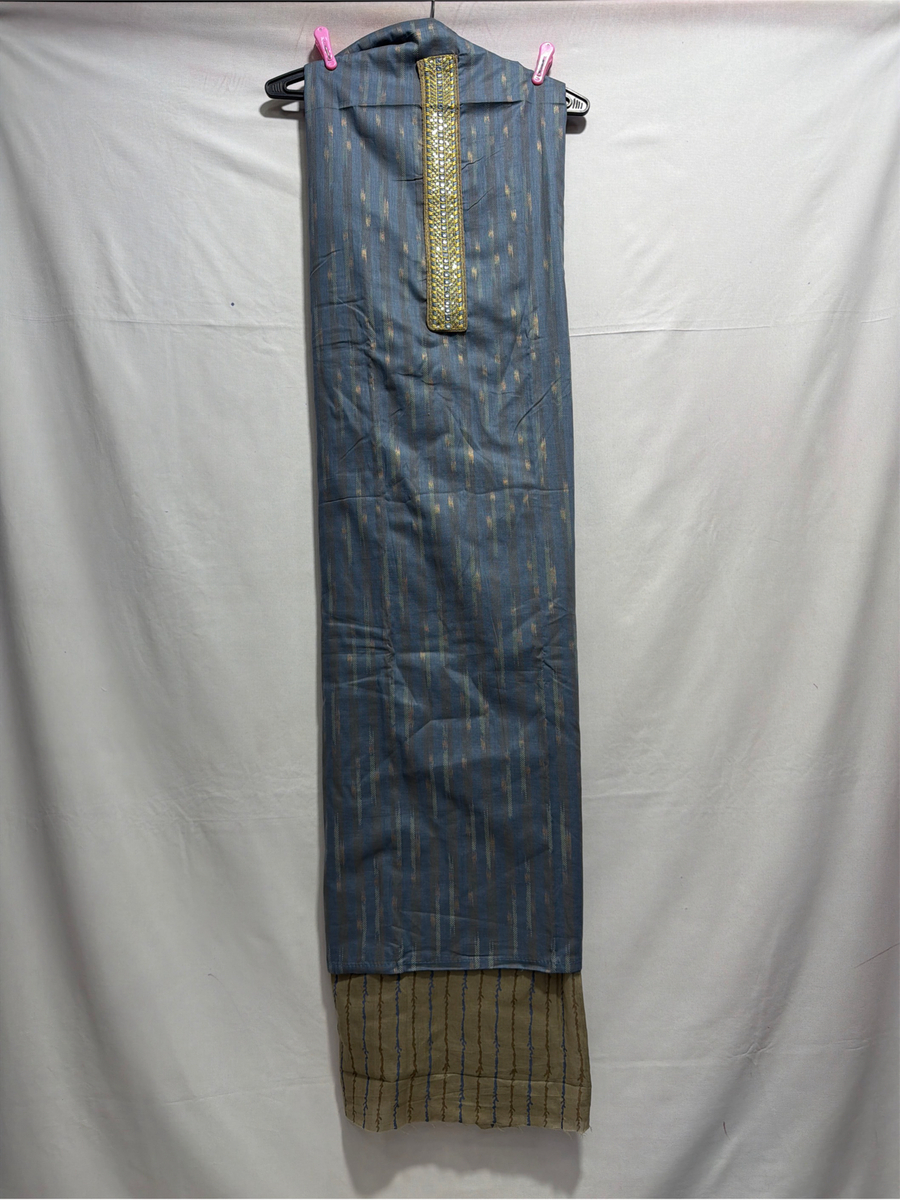 Kala Sanskruti Lighat Grey & Khakhi Color Heavy Cotton Satin Printed Dress With Work 2.5 M (Each Piece) Elegant Traditional Wear Dress Material for Women
