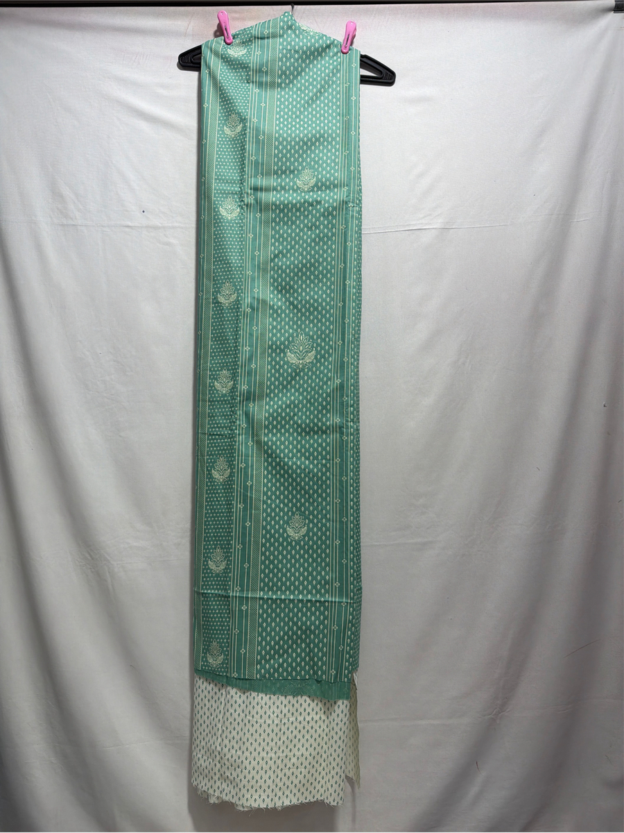 Kala Sanskruti Pista & Whit Color Heavy Cotton Satin Printed Dress 2.5 M (Each Piece) Elegant Traditional Wear Dress Material for Women