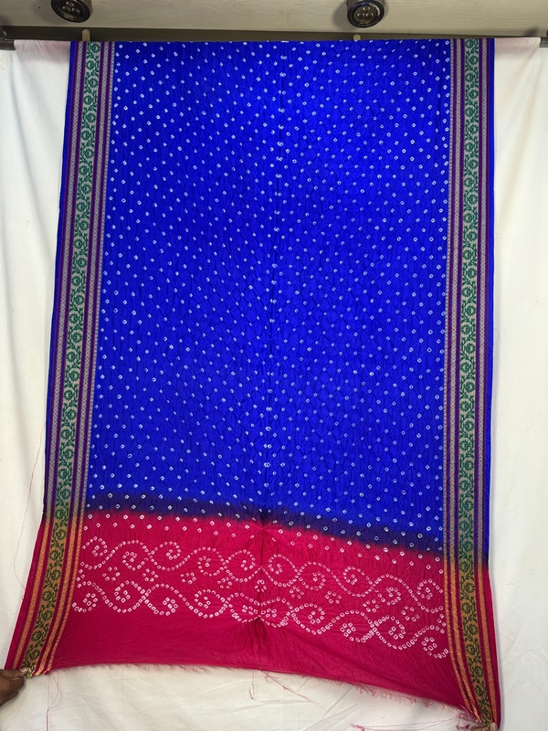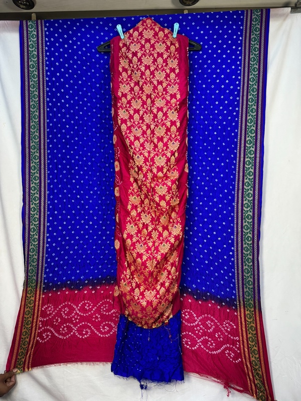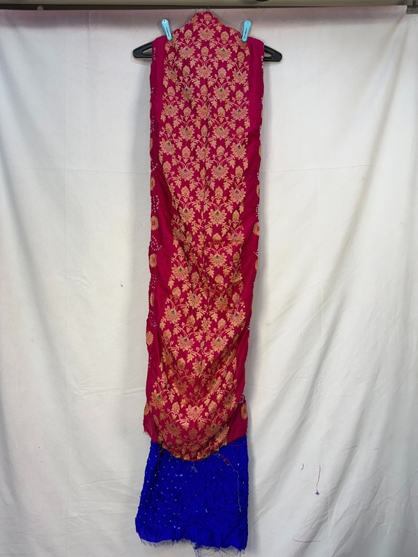 - Color & Craft: Beautiful Rani Pink & Blue designed with Hand Made Bandhani, reflecting artisanal skill.