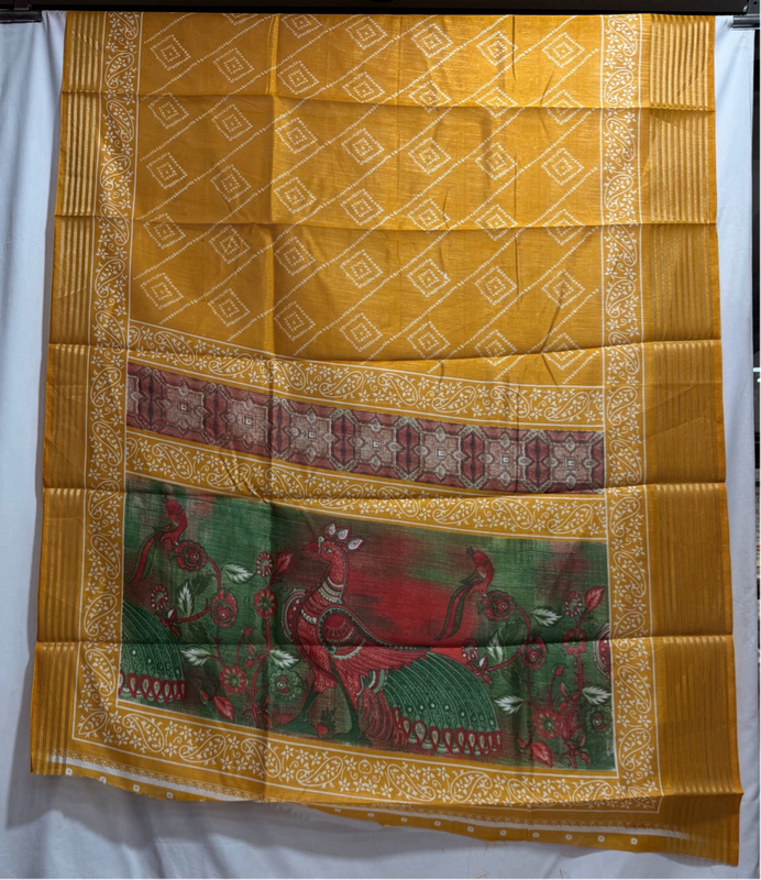 Kala Sanskruti All Over Golden Color Art Silk Printed Saree 6.5M with Blouse Piece Elegant Traditional Wear Bridal Unique Saree for Women