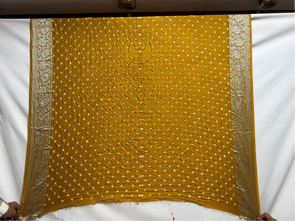 Kala Sanskruti Golden & Rust Color Dupion Silk Bandhani Saree 6.5M with Blouse Piece Elegant Traditional Wear Bridal Saree for Women