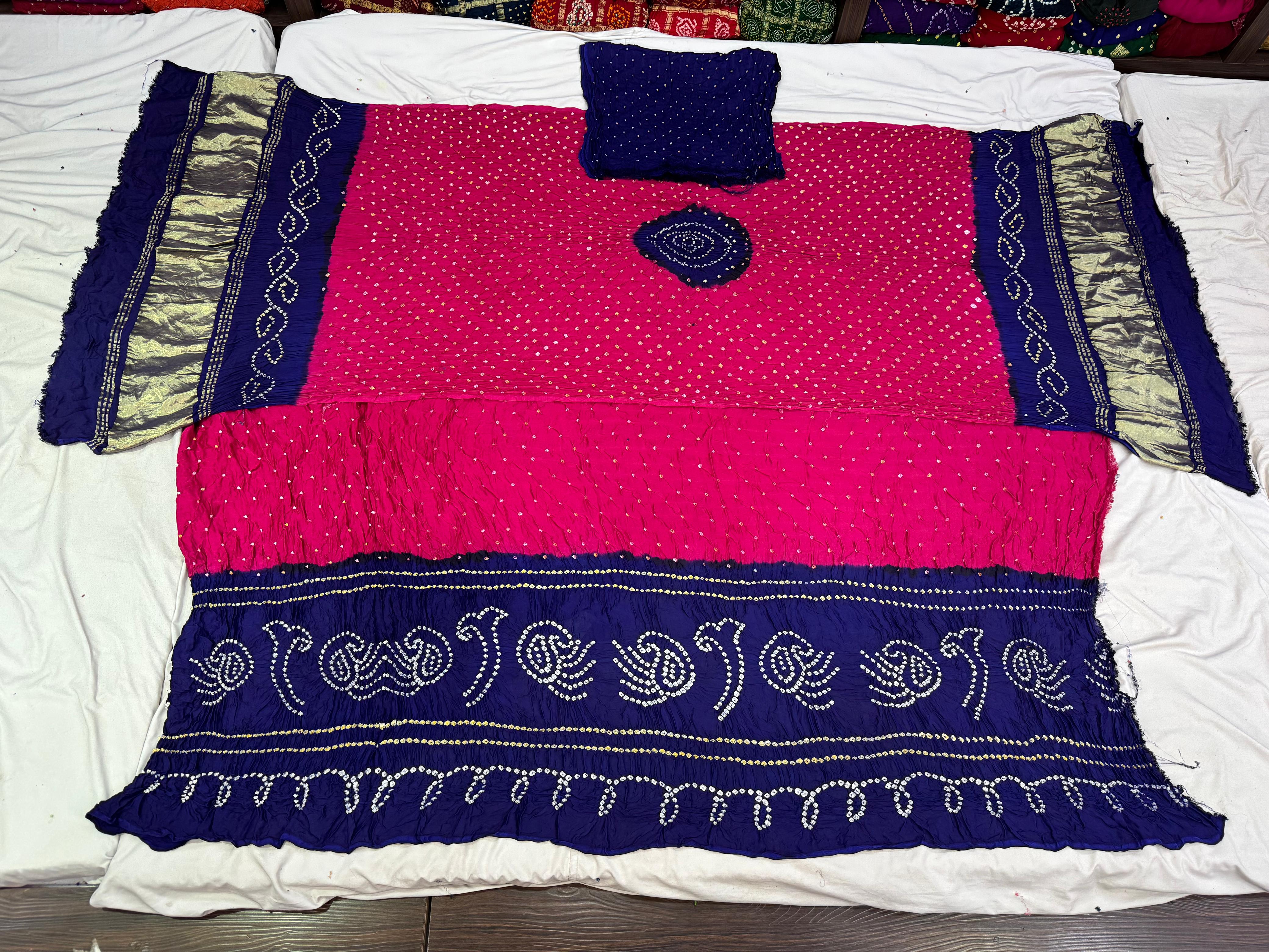 - Design: Pink & Royal Blue — Hand Made Bandhani motifs across the body.