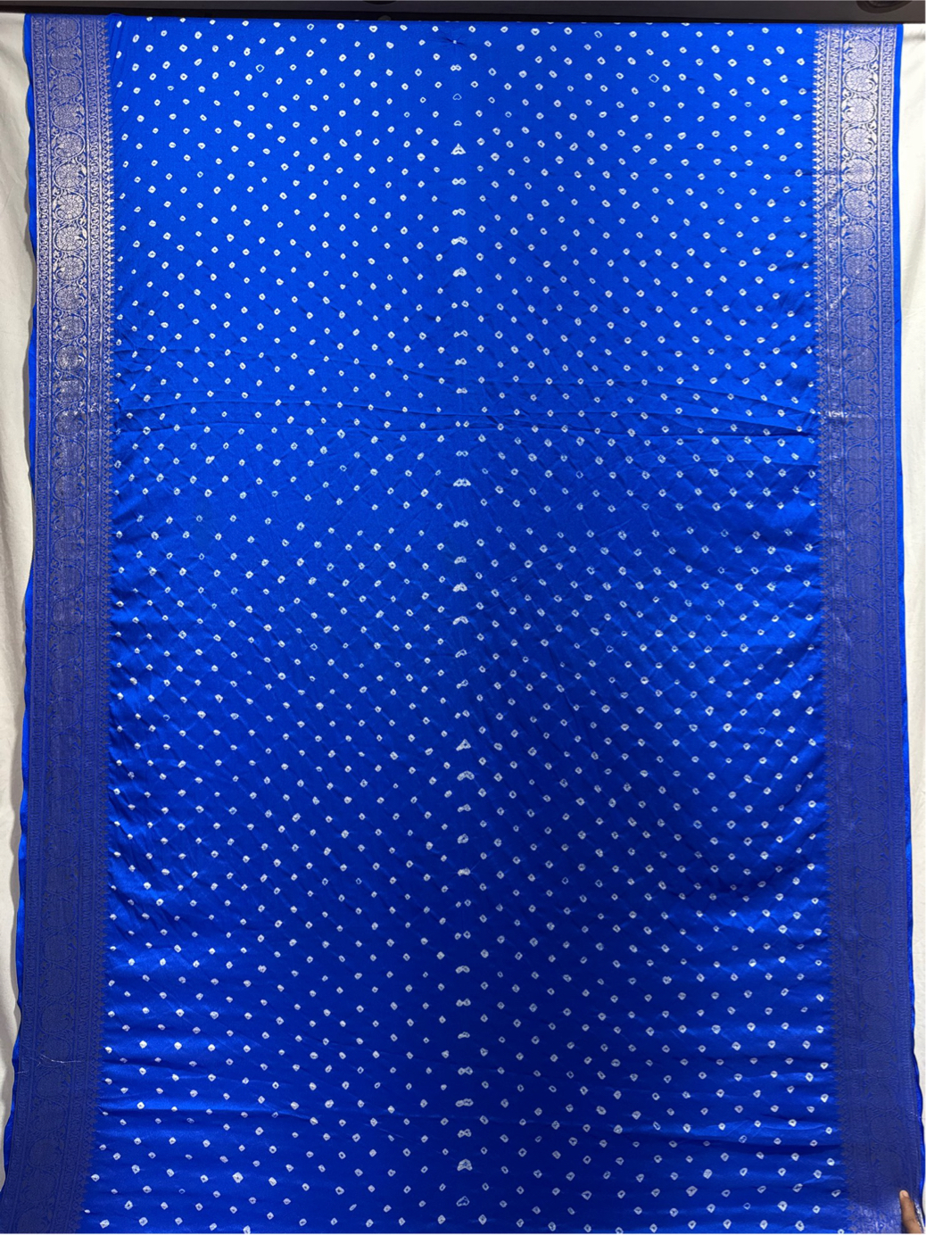 - Design & Shade: All Over Blue base enhanced with Hand Made Bandhani, a true example of cultural craftsmanship.