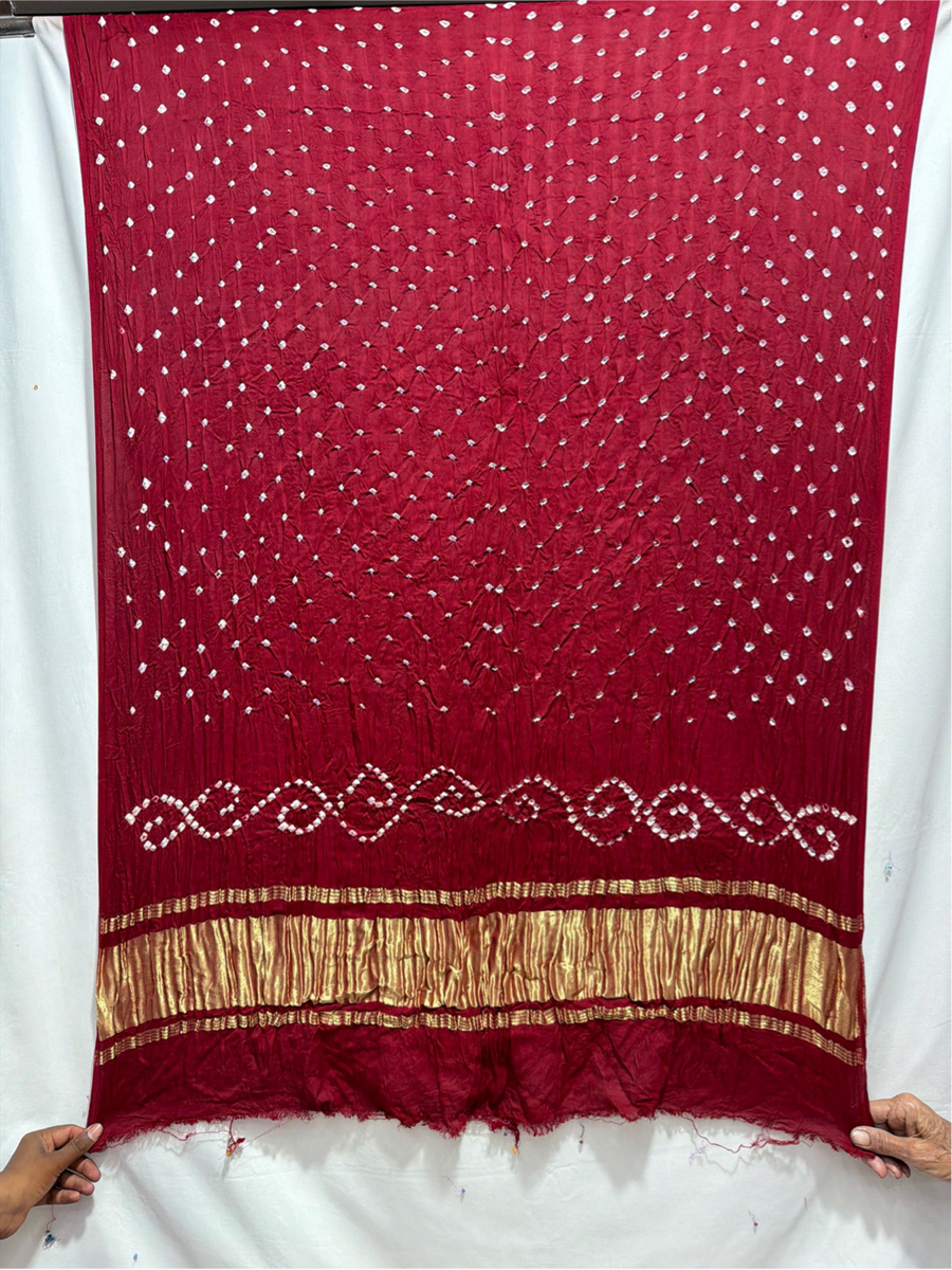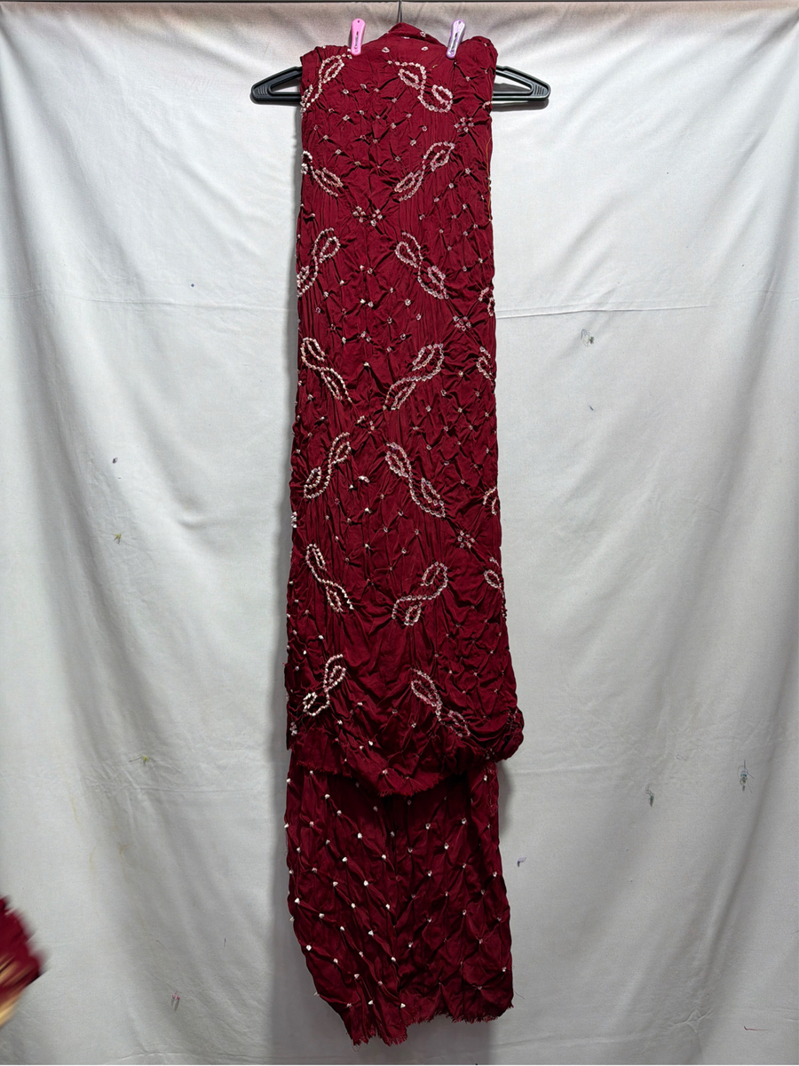 Kala Sanskruti All Over Maroon Color Art Silk Bandhani Dress 2.5 M Each Piece Elegant Traditional Wear Art Silk Dress for Women