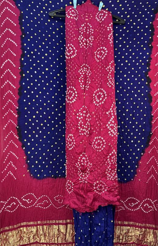 - Design: Pink & Blue — Hand Made Bandhani motifs across the body.