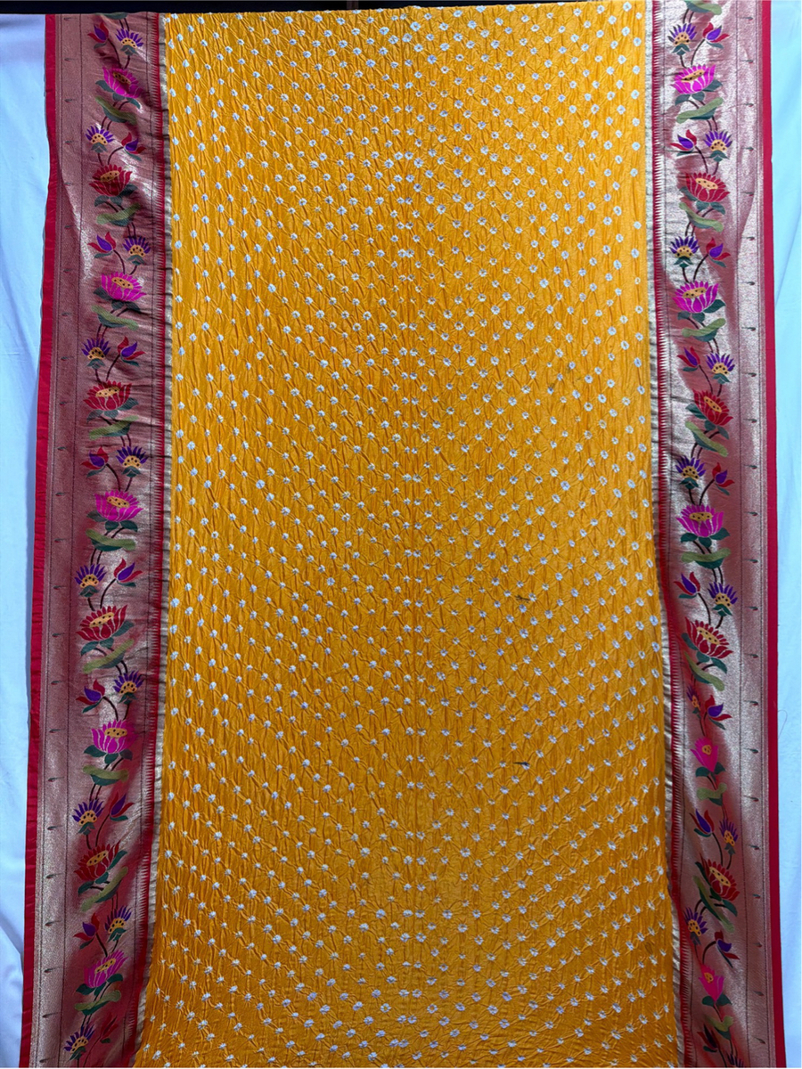 Kala Sanskruti Golden & Red Color Art Silk Bandhani Saree 6.5M with Blouse Piece Elegant Traditional Wear Bridal Unique Saree for Women