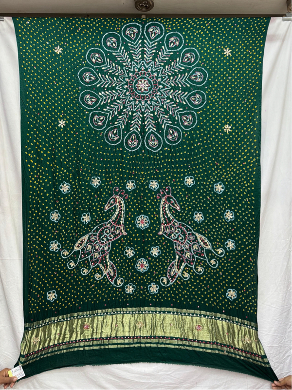 - Design: All Over Green tone enhanced by Hand Made Bandhani.