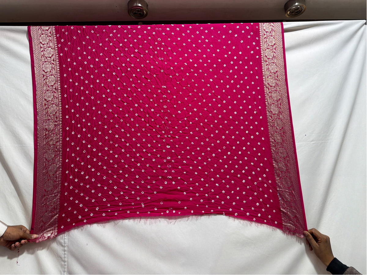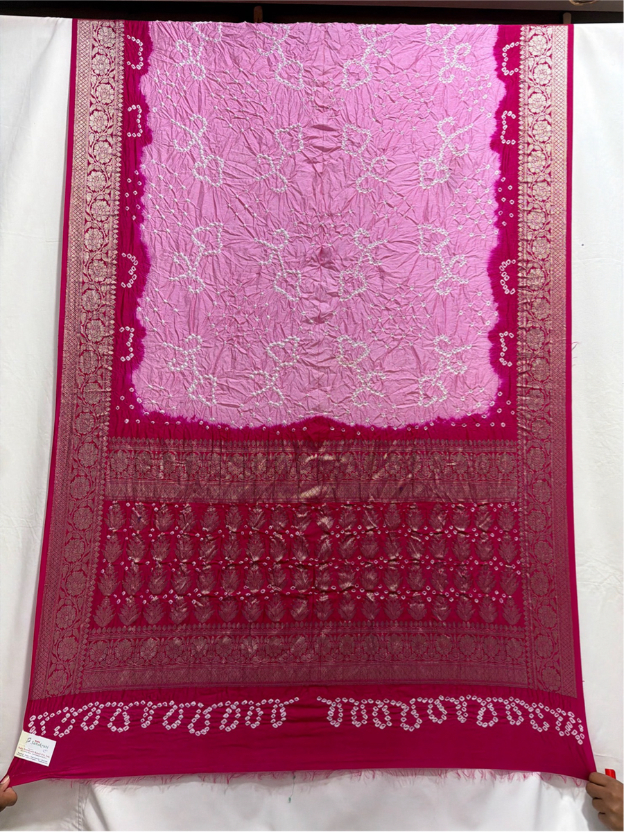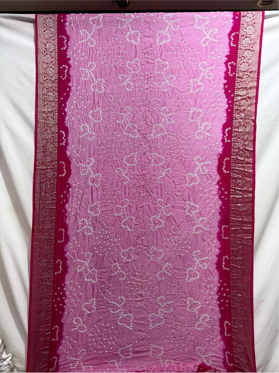 Kala Sanskruti Light Dark Pink Color Dupion Silk Bandhani Saree 6.5M with Blouse Piece Elegant Traditional Wear Bridal Saree for Women