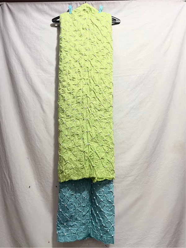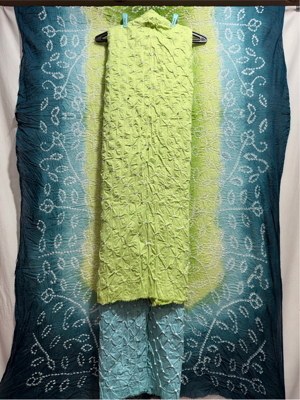 Kala Sanskruti Parrot Green & Light Rama Green Color Heavy Cotton Satin Bandhani Dress 2.5 M (Each Piece) Elegant Traditional Wear Dress Material for Women