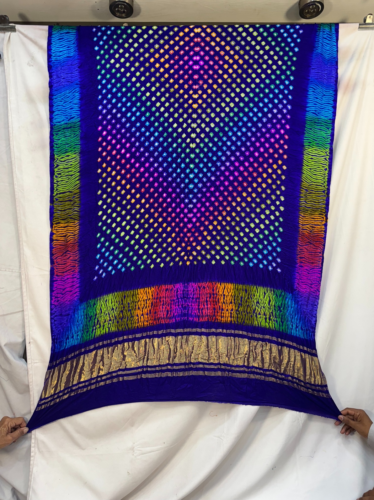 - Color & Craft: Beautiful Multi & Royal Blue designed with Hand Made Bandhani, reflecting artisanal skill.