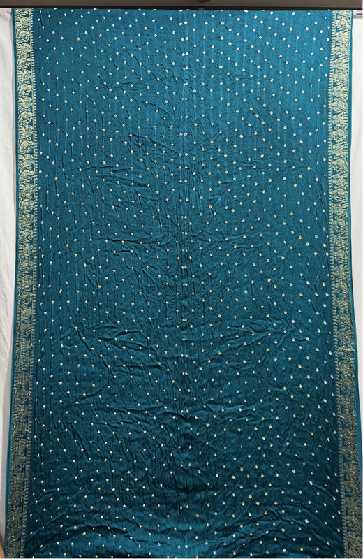 Kala Sanskruti All Over Rama Color Art Silk Bandhani Saree 6.5M with Blouse Piece Elegant Traditional Wear Bridal Unique Saree for Women