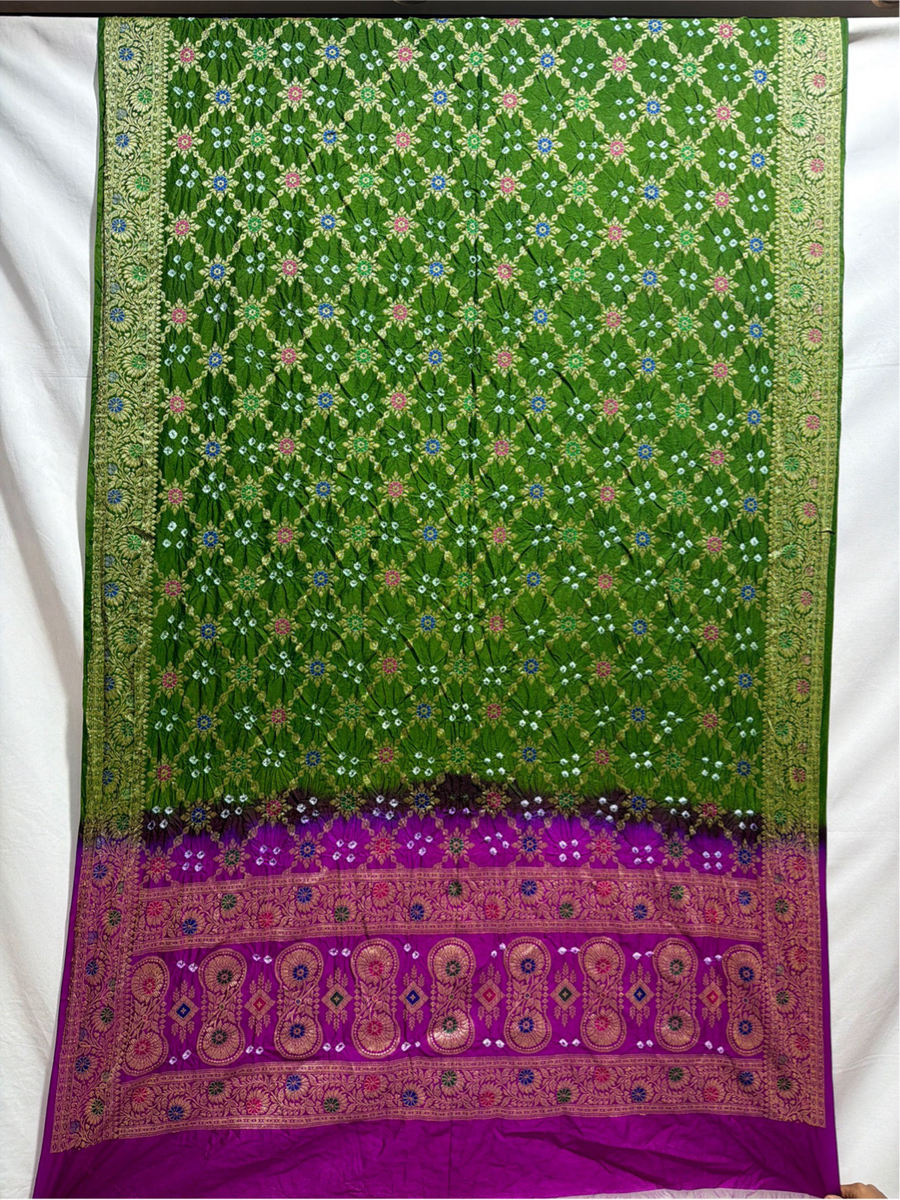 Kala Sanskruti Magenta & Green Color Dupion Silk Bandhani Dress 2.5 M (Each Piece) Elegant Traditional Wear Dress for Women