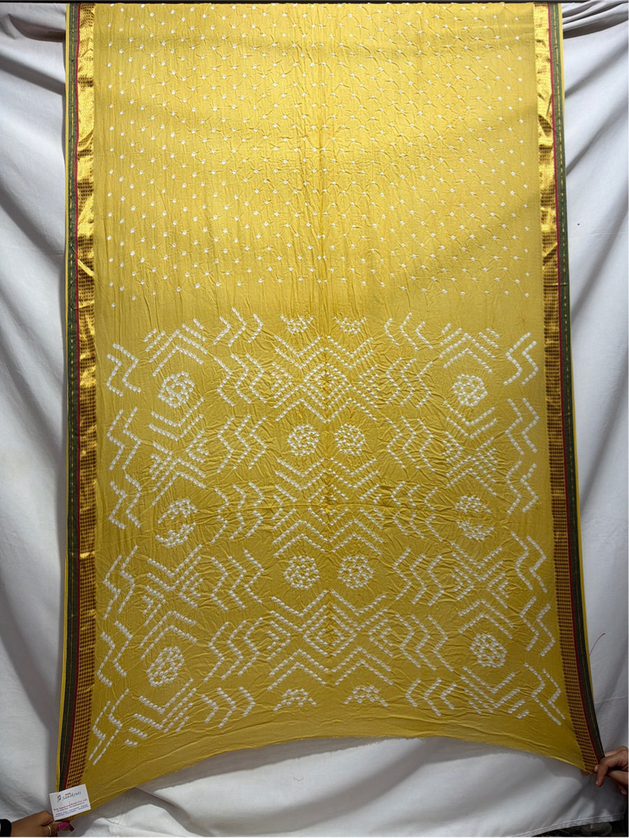 Kala Sanskruti All Over Lemon Color Cotton Bandhani Saree 6.5M with Blouse Piece Elegant Traditional Wear Saree for Women