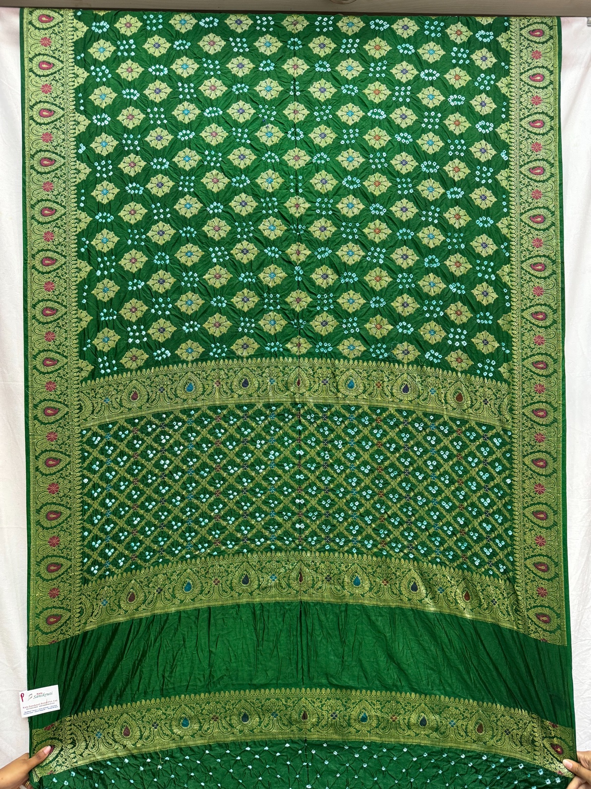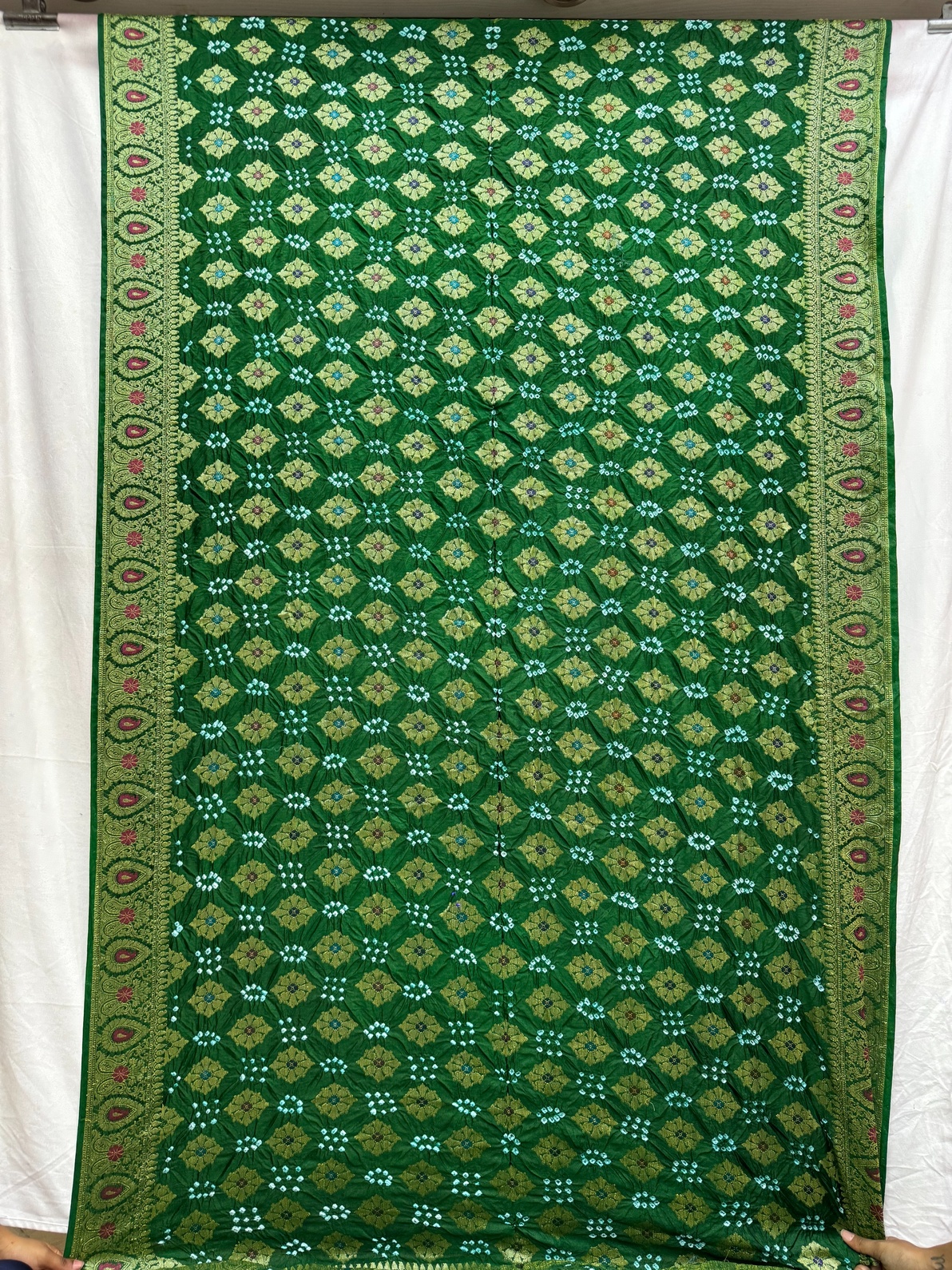 - Design & Shade: All Over Green base enhanced with Hand Made Bandhani, a true example of cultural craftsmanship.