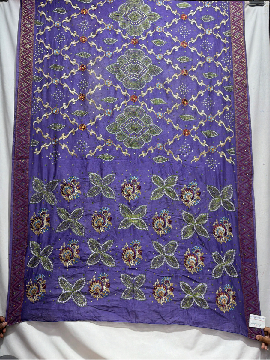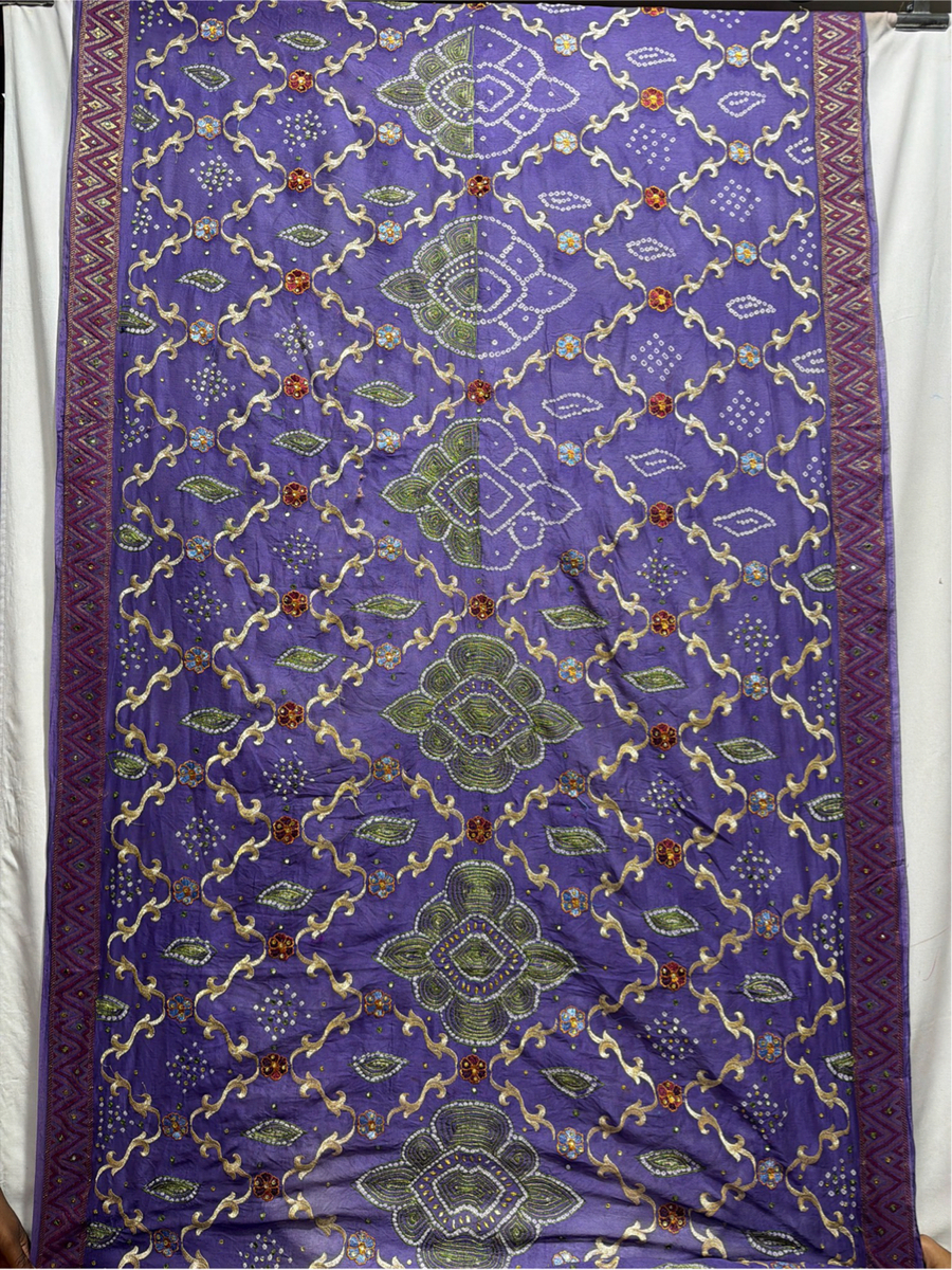 Kala Sanskruti All Over Lavendar Color Dupion Silk Bandhani Saree With Hand Work 5.5M Without Blouse Elegant Traditional Wear Graceful Handcrafted Artistry For Woman