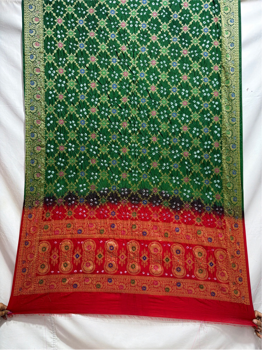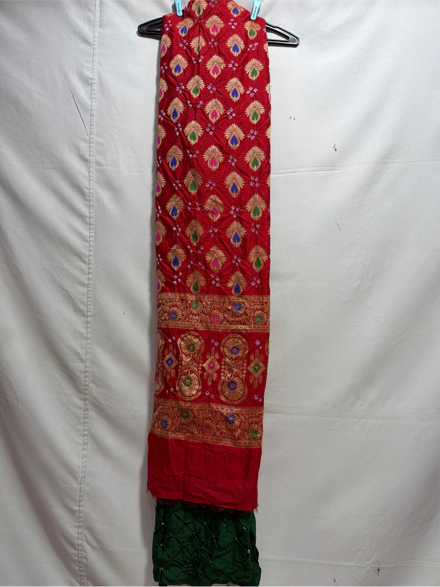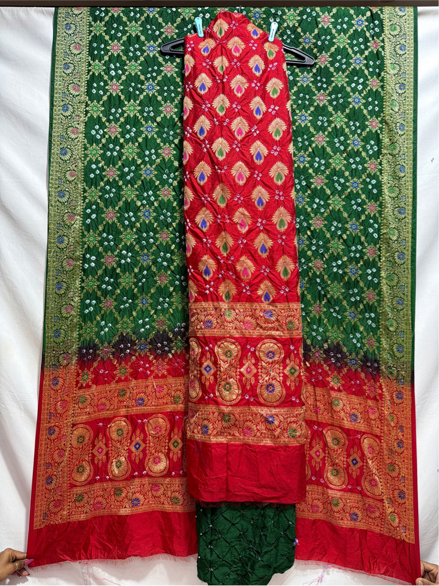 Kala Sanskruti Red & Green Color Dupion Silk Bandhani Dress 2.5 M (Each Piece) Elegant Traditional Wear Dress for Women