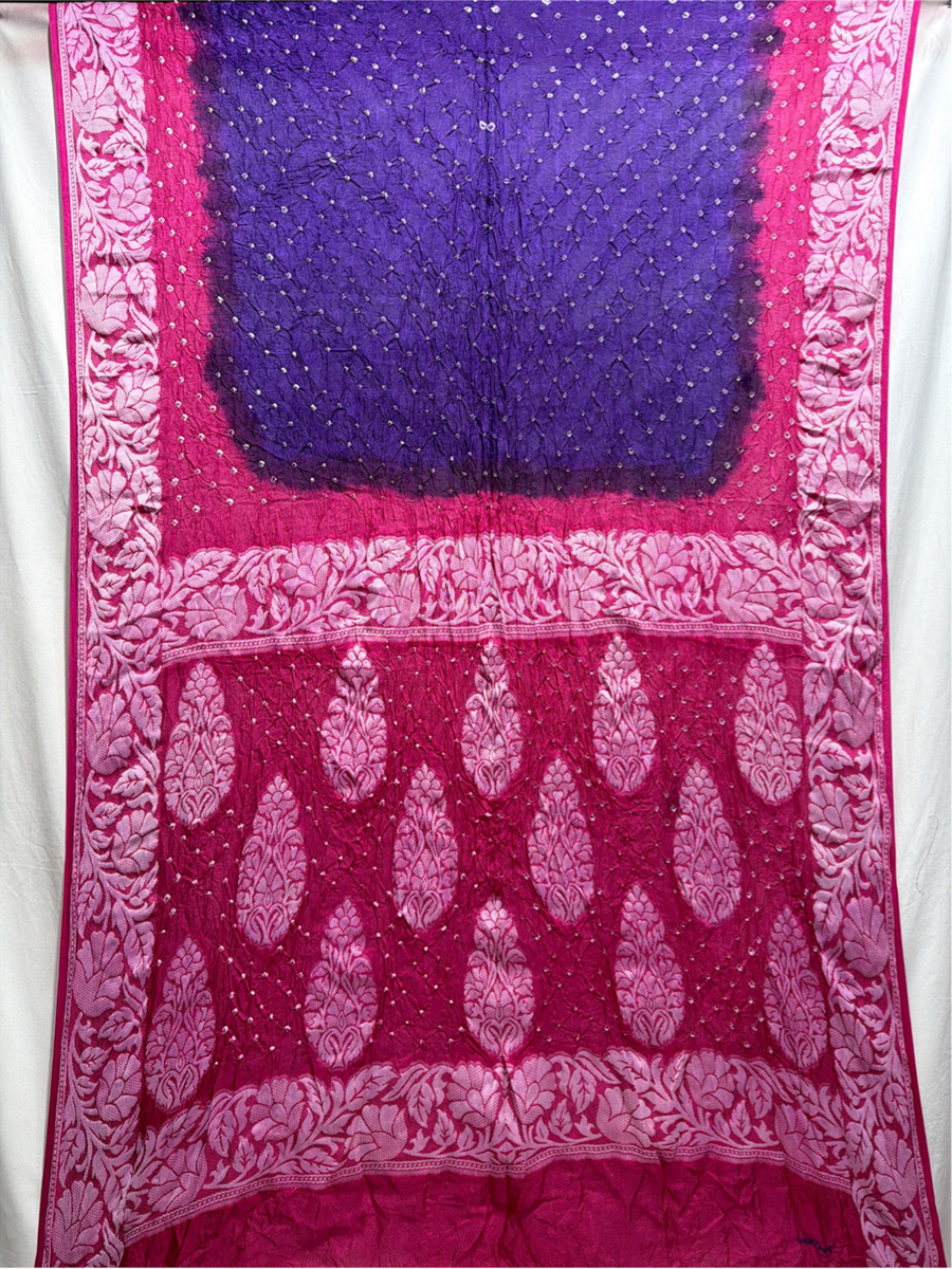 Kala Sanskruti Pink & Purple Color Art Silk Bandhani Saree 6.5M with Blouse Piece Elegant Traditional Wear Bridal Unique Saree for Women