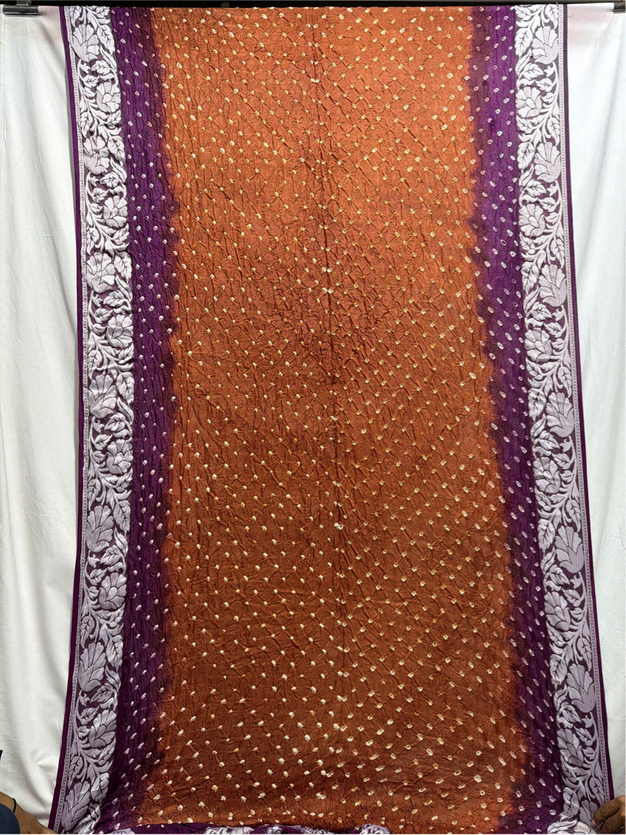 Kala SanskrutiChiku & Magenta Colour Art Silk Bandhani Saree 6.5M with Blouse Piece Elegant Traditional Wear Bridal Unique Saree for Women