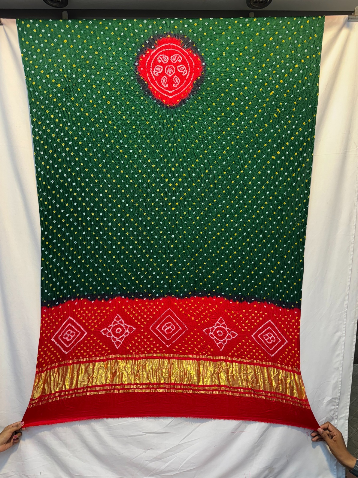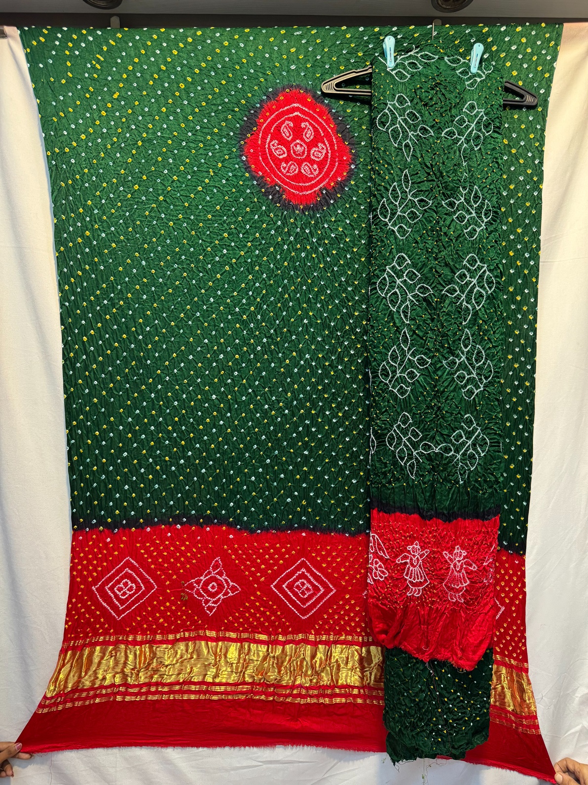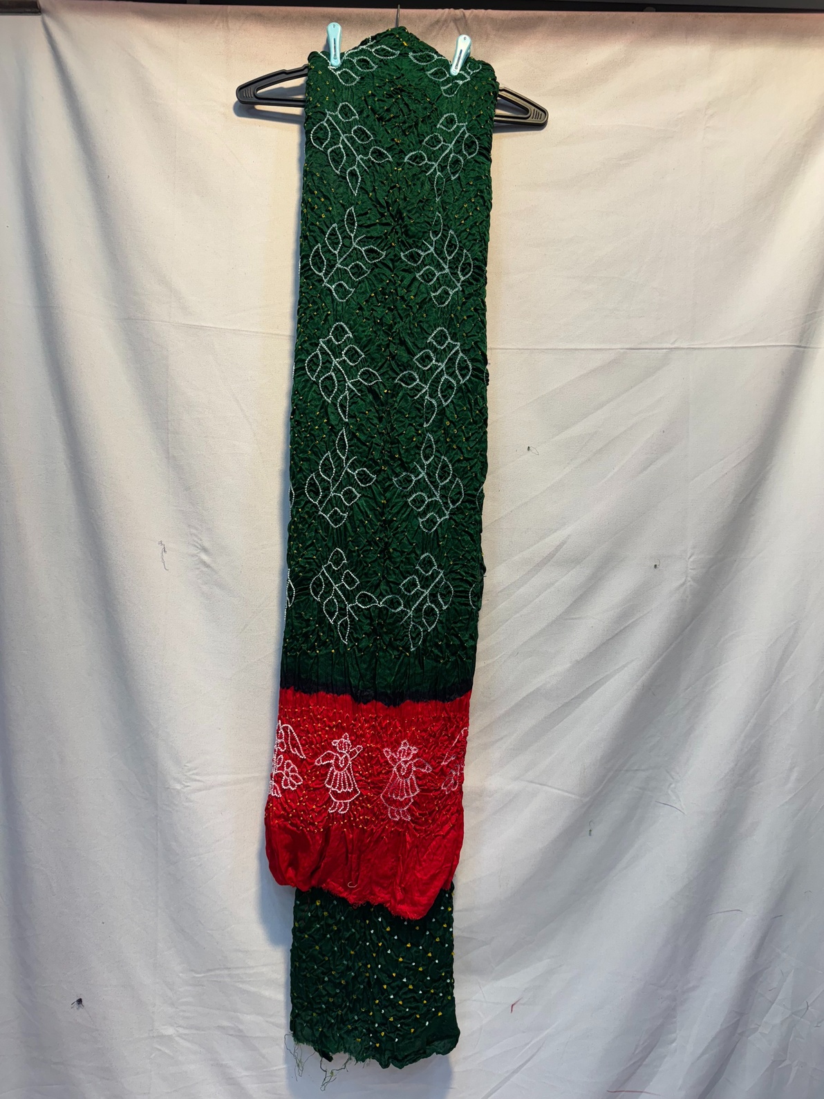 - Color & Craft: Beautiful Green & Red designed with Hand Made Bandhani, reflecting artisanal skill.