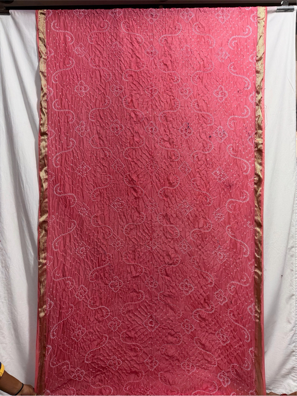 Kala Sanskruti All Over Peach Color Dupion Silk Bandhani Saree 6.5M with Blouse Piece Elegant Traditional Wear Bridal Saree for Women