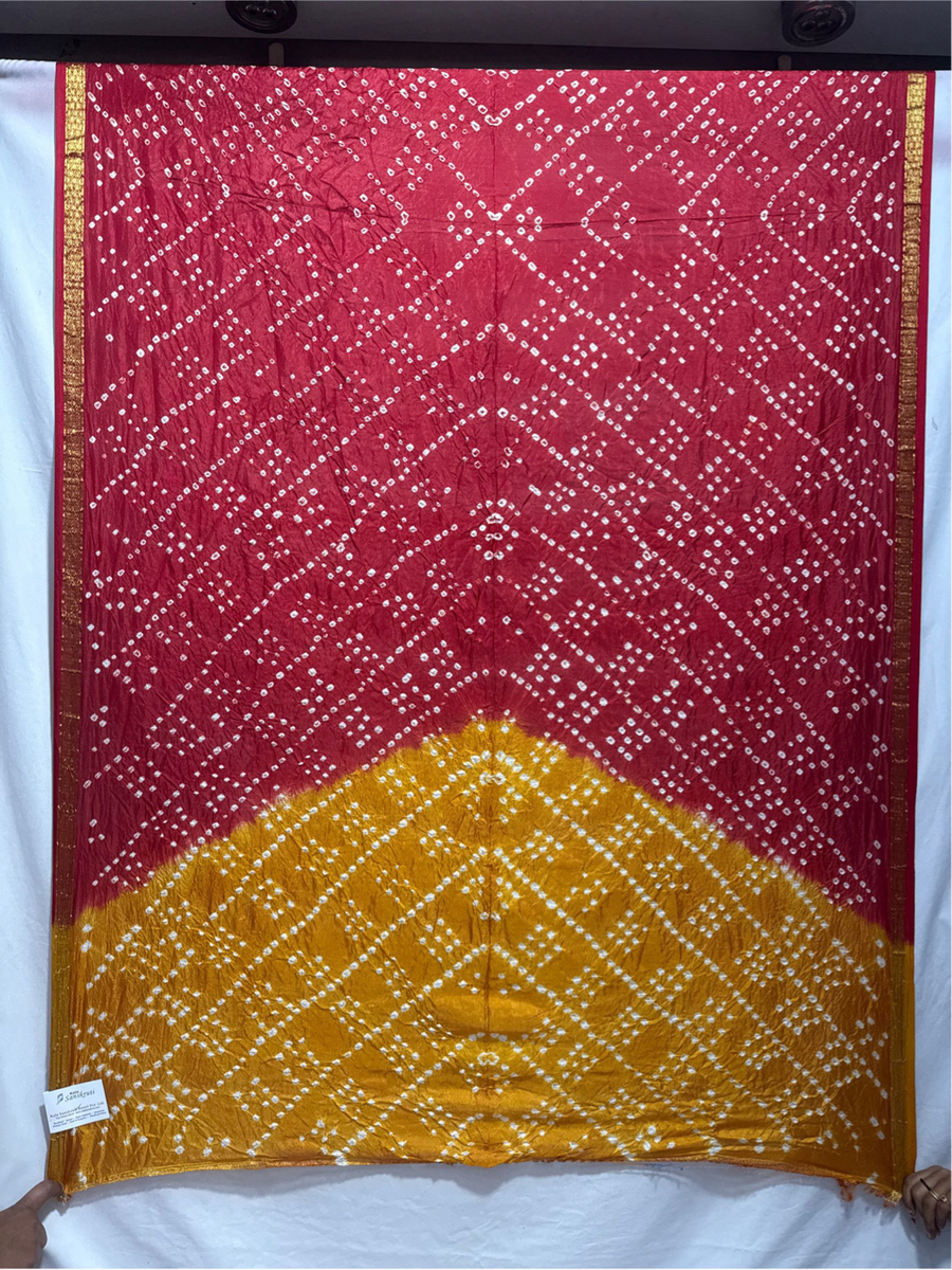 - Design: Maroon & Golden Hand Made Bandhani motifs across the body.