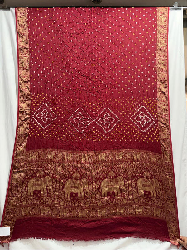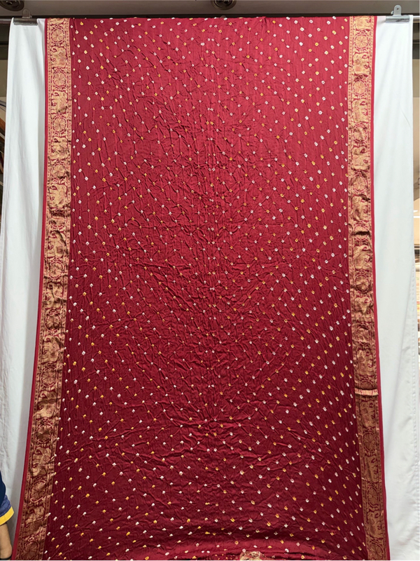 Kala Sanskruti All Over Maroon Color Art Silk Bandhani Saree 6.5M with Blouse Piece Elegant Traditional Wear Bridal Unique Saree for Women