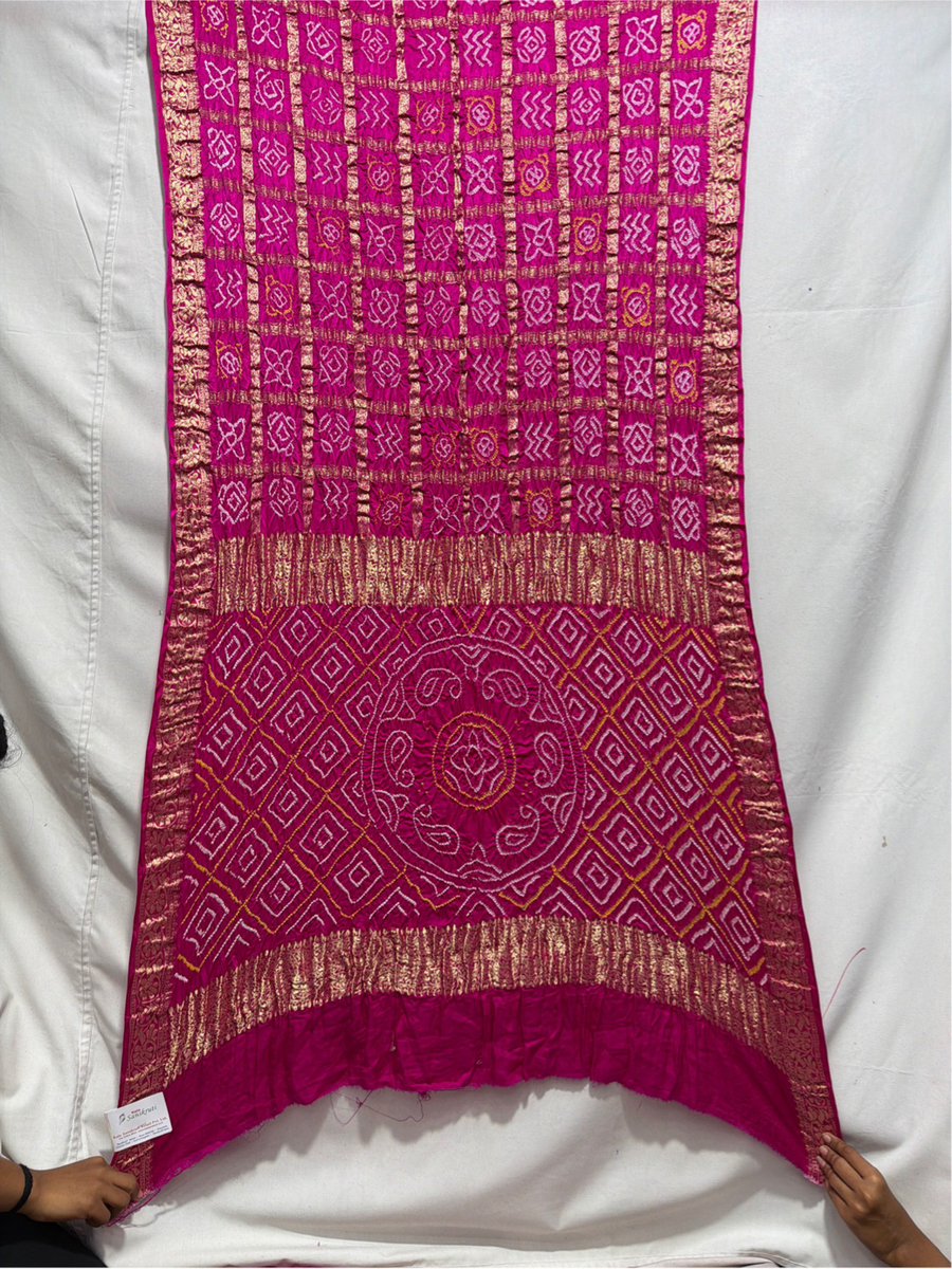 Kala Sanskruti All Over Pink Color Pure Gaji Silk Heavy Gharchola Bandhani Saree 6.5M with Blouse Piece Elegant Traditional Wear Gharchola Saree for Women